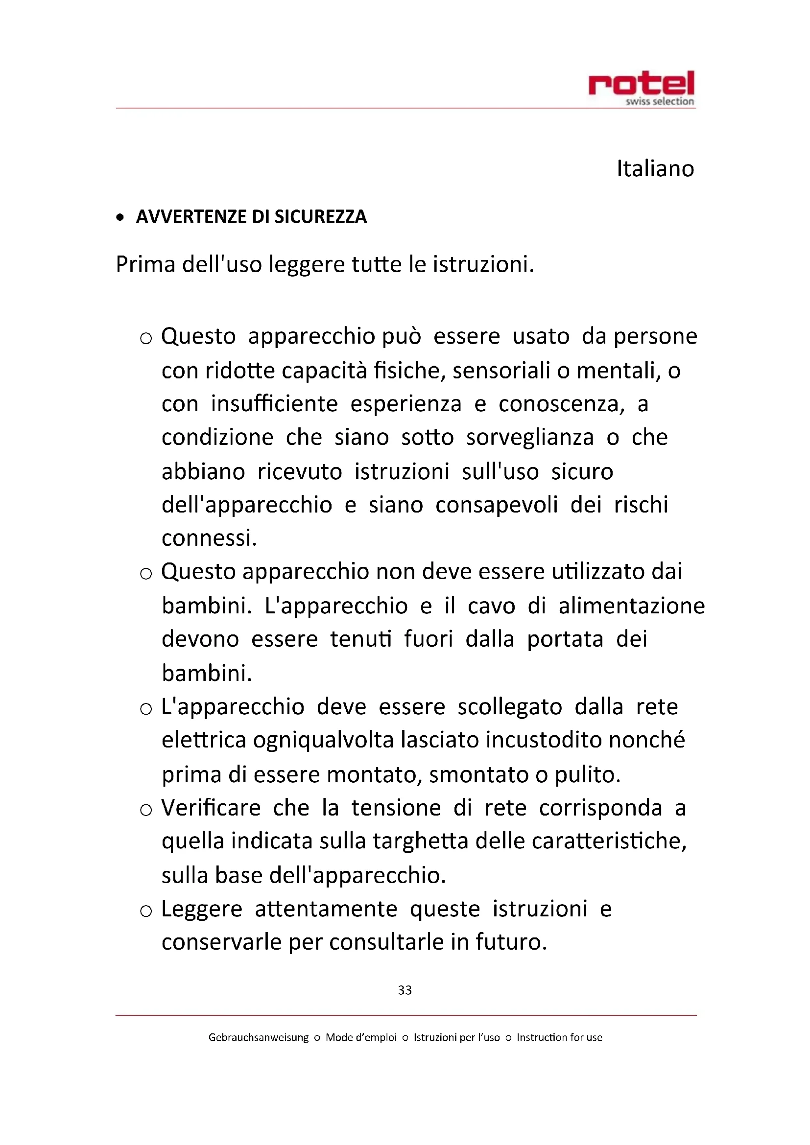 Per lo smaltimento corretto, la macchina deve essere restituita al rivenditore specializzato, al servizio di assistenza o alla ditta Rotel AG.