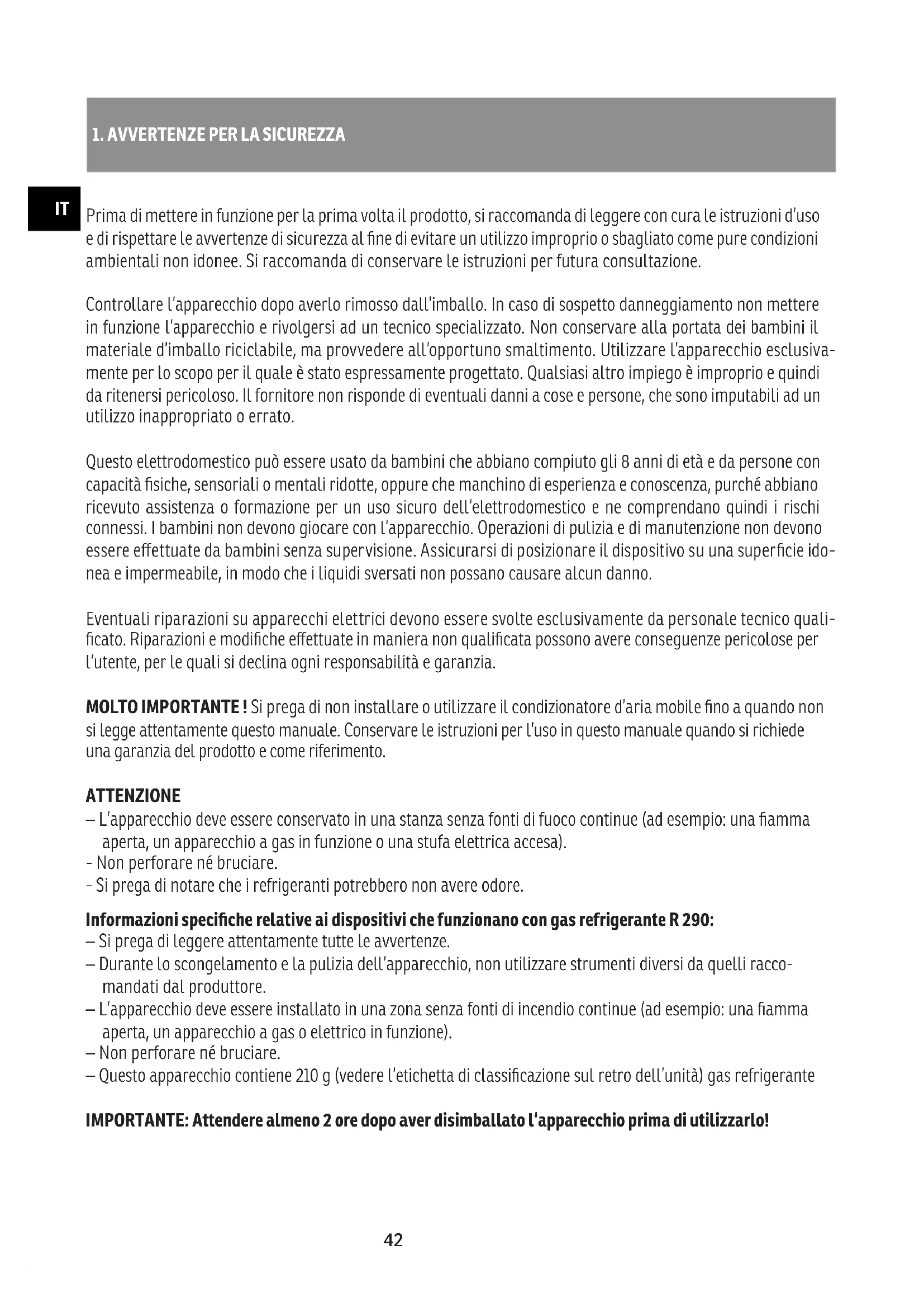 1. AVVERTENZE PER LA SICUREZZA