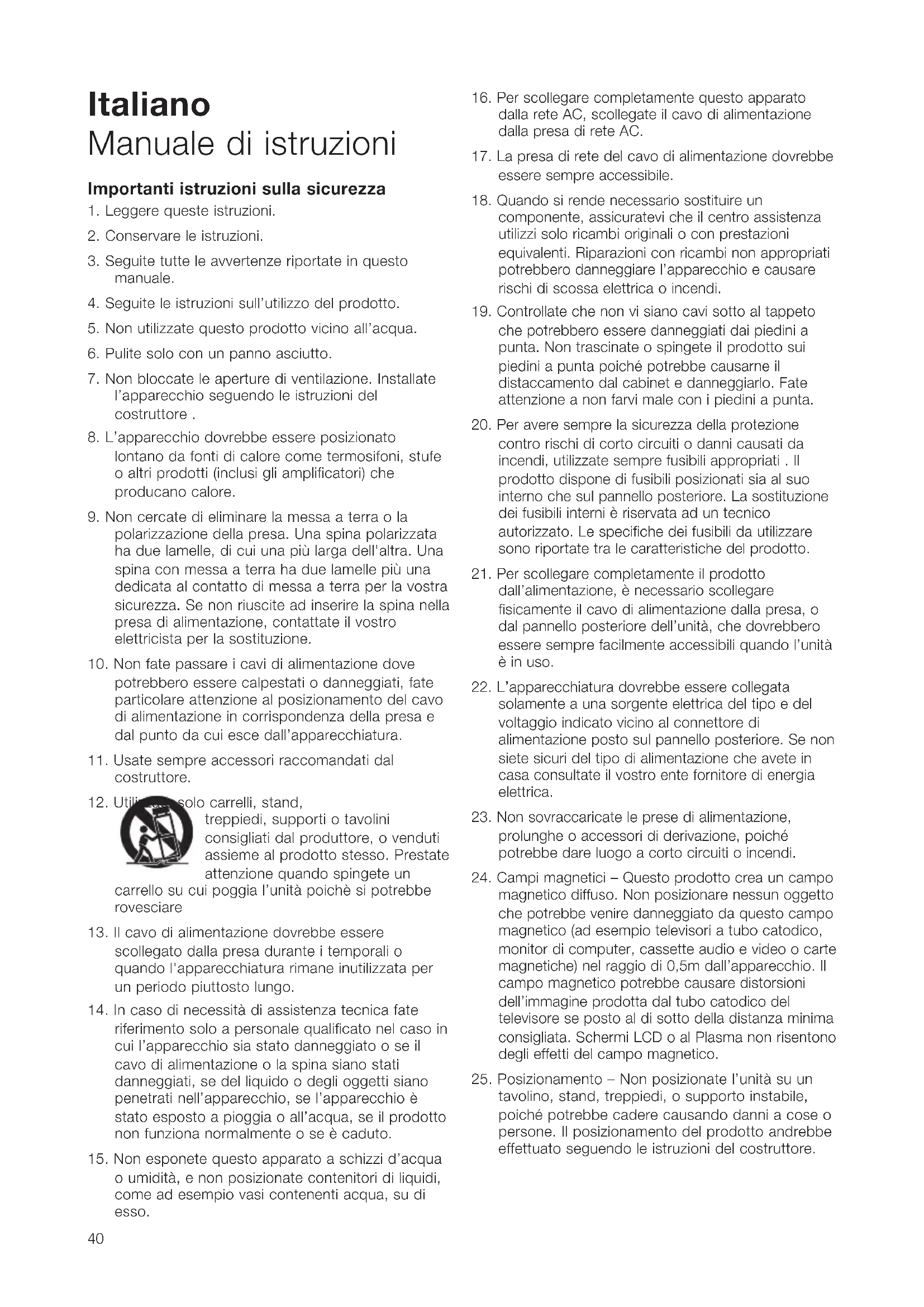 25. Posizionamento – Non posizionate l’unità su un