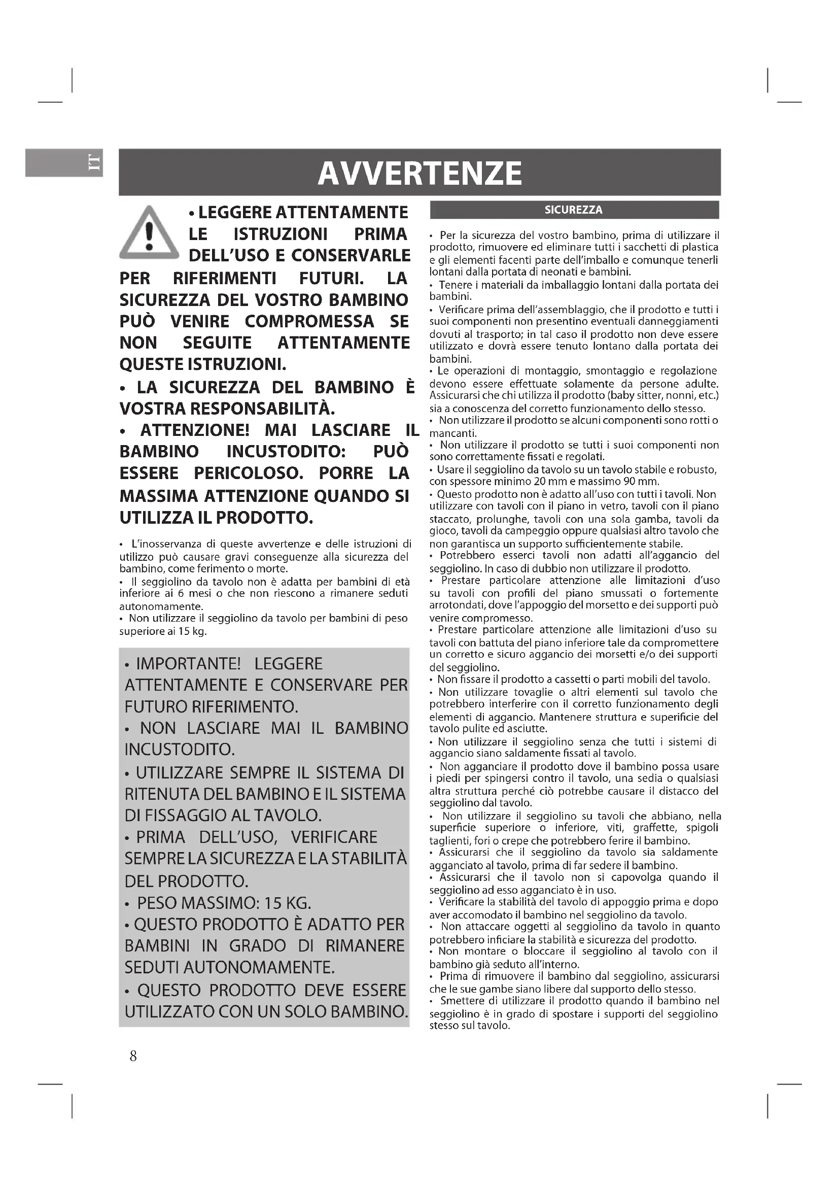 - LA SICUREZZA DEL BAMBINO È VOSTRA RESPONSABILITÀ.
