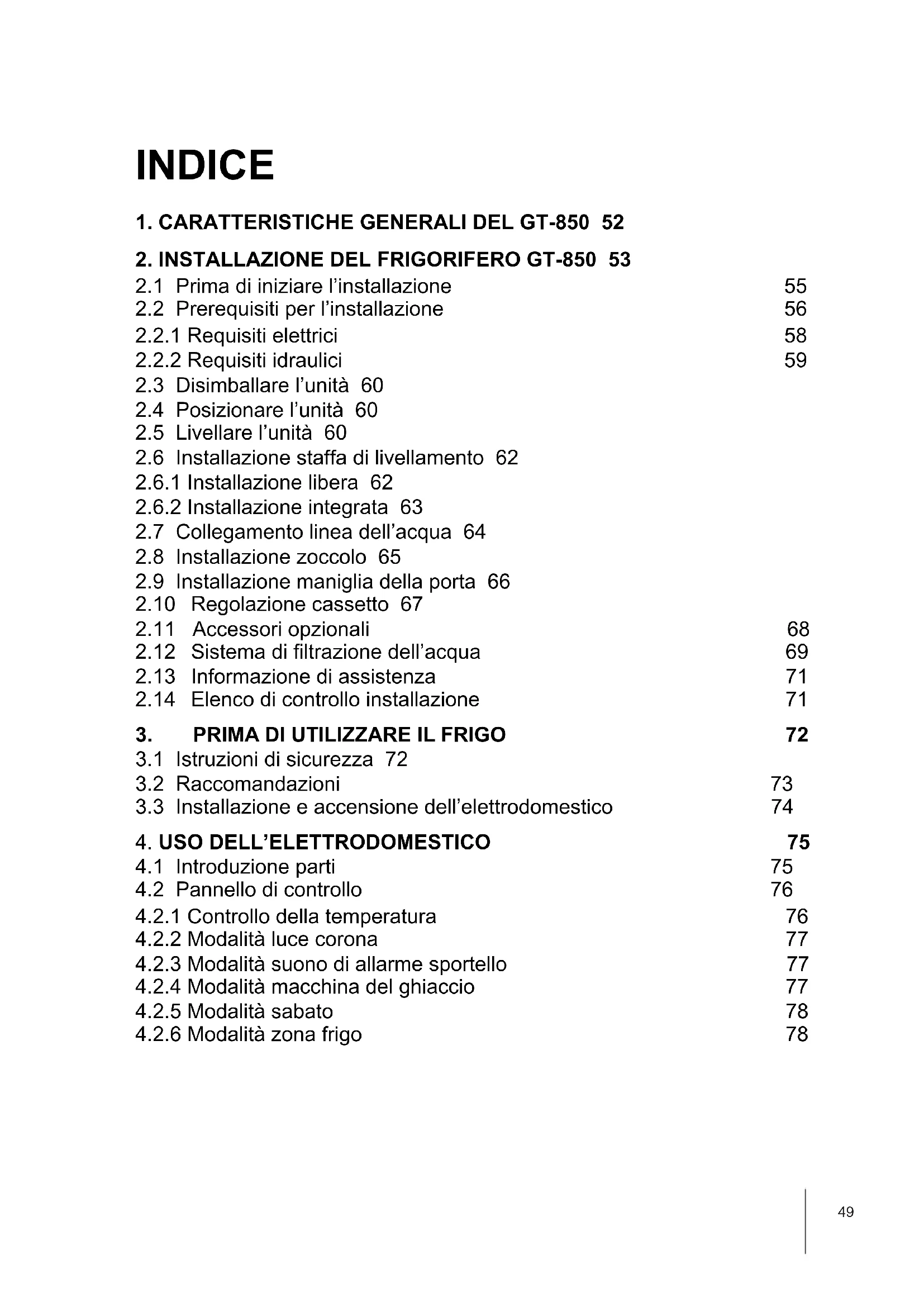2. INSTALLAZIONE DEL FRIGORIFERO GT-850