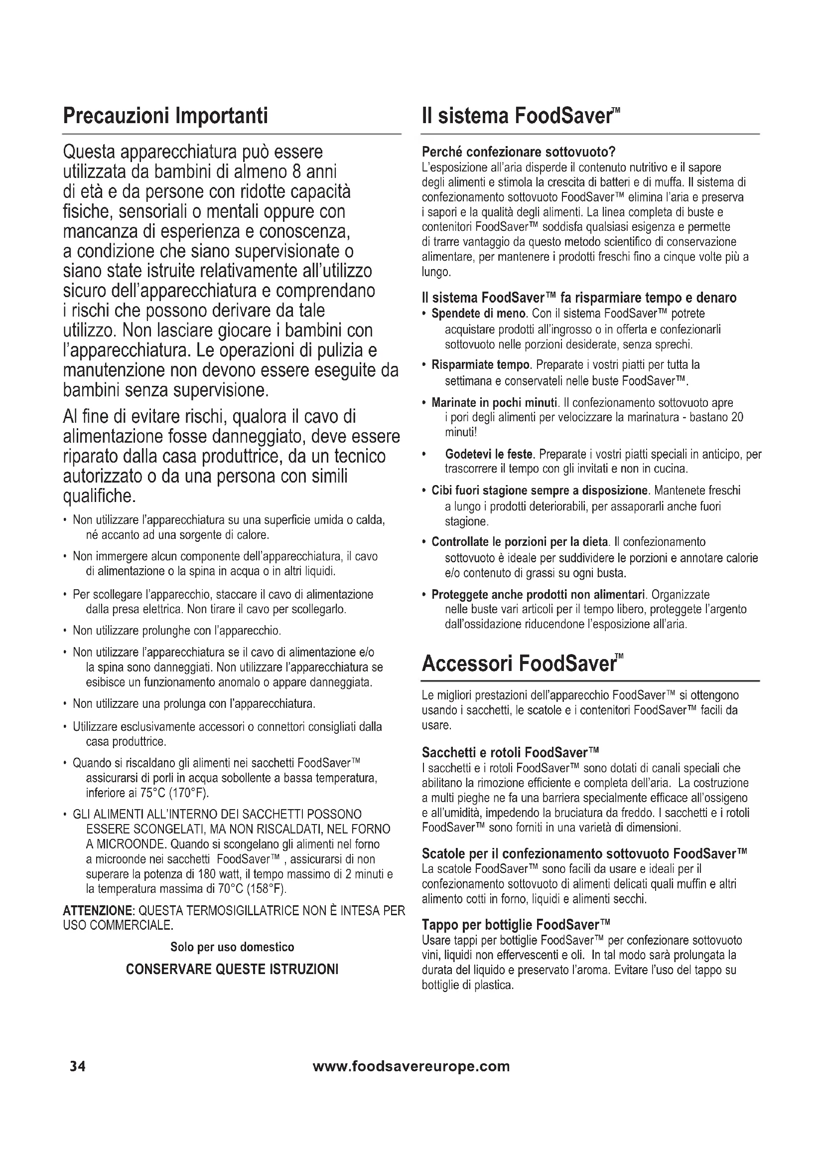 MANUALE UTENTE FFS003X FOODSAVER