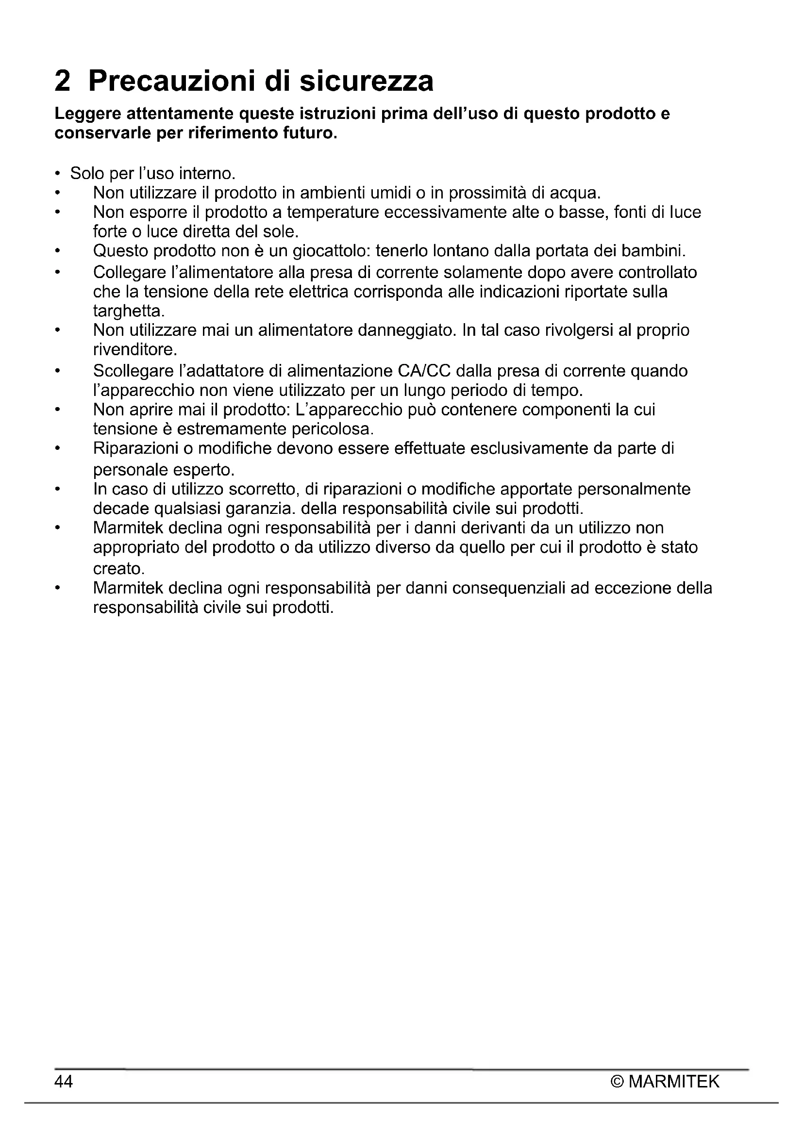 - Marmitek declina ogni responsabilità per i danni derivanti da un utilizzo non appropriato del prodotto o da utilizzo diverso da quello per cui il prodotto è stato creato.