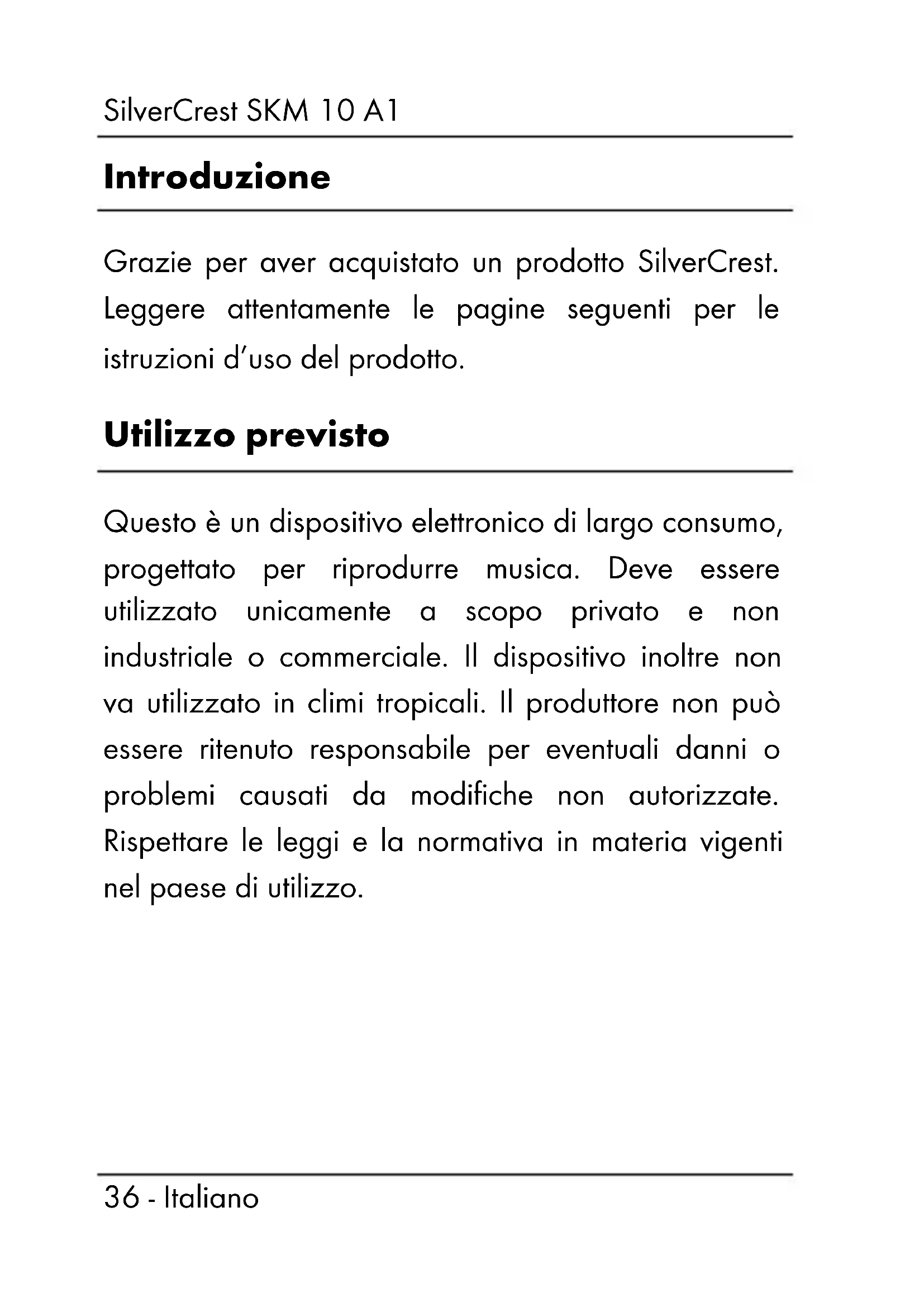 MANUALE UTENTE SKM 10 A1 SILVERCREST
