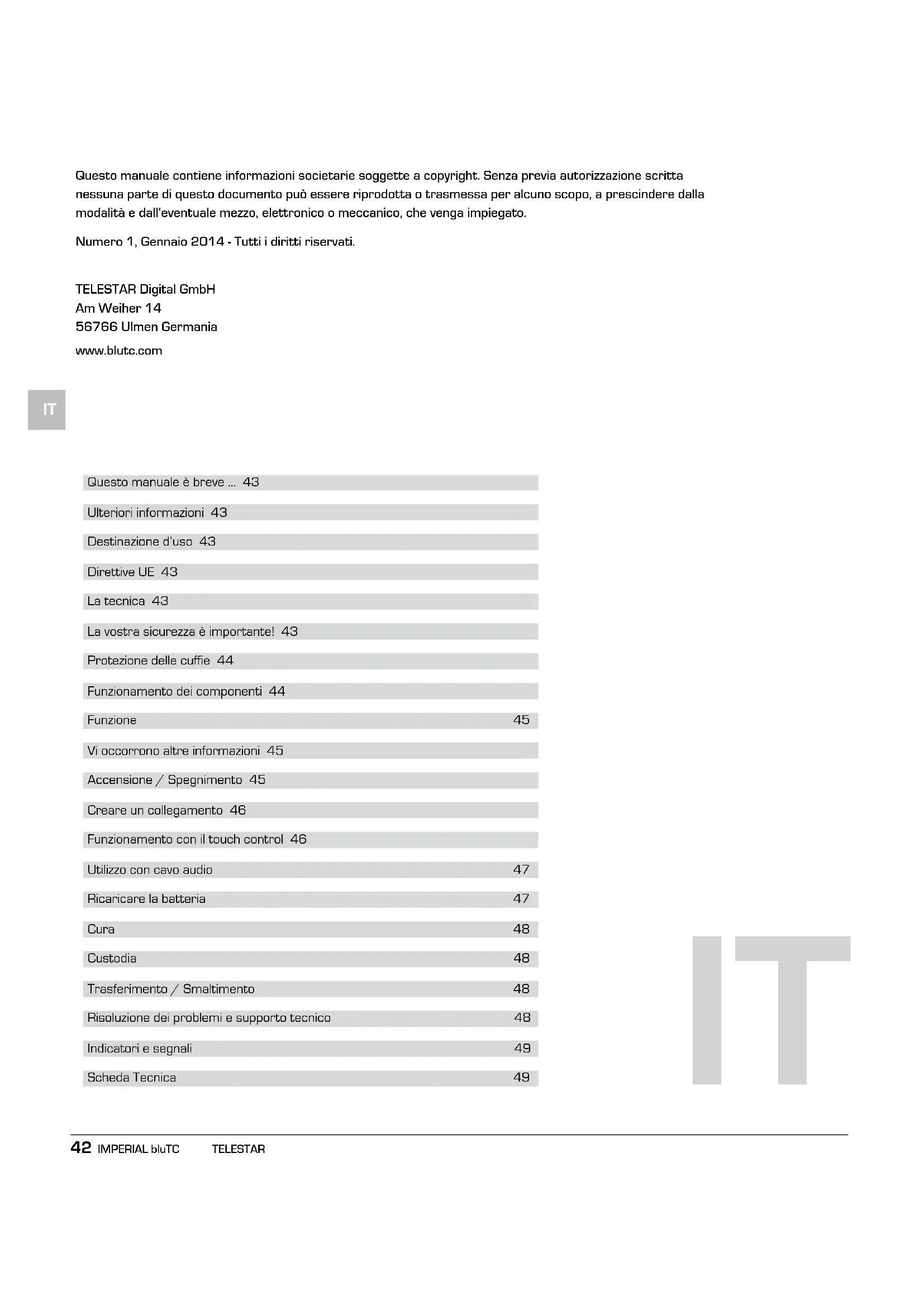 Potete trovare informazioni più aggiornate su queste cuffie e su altri prodotti sul sito Internet www.blutc.comewww.telestar.de.