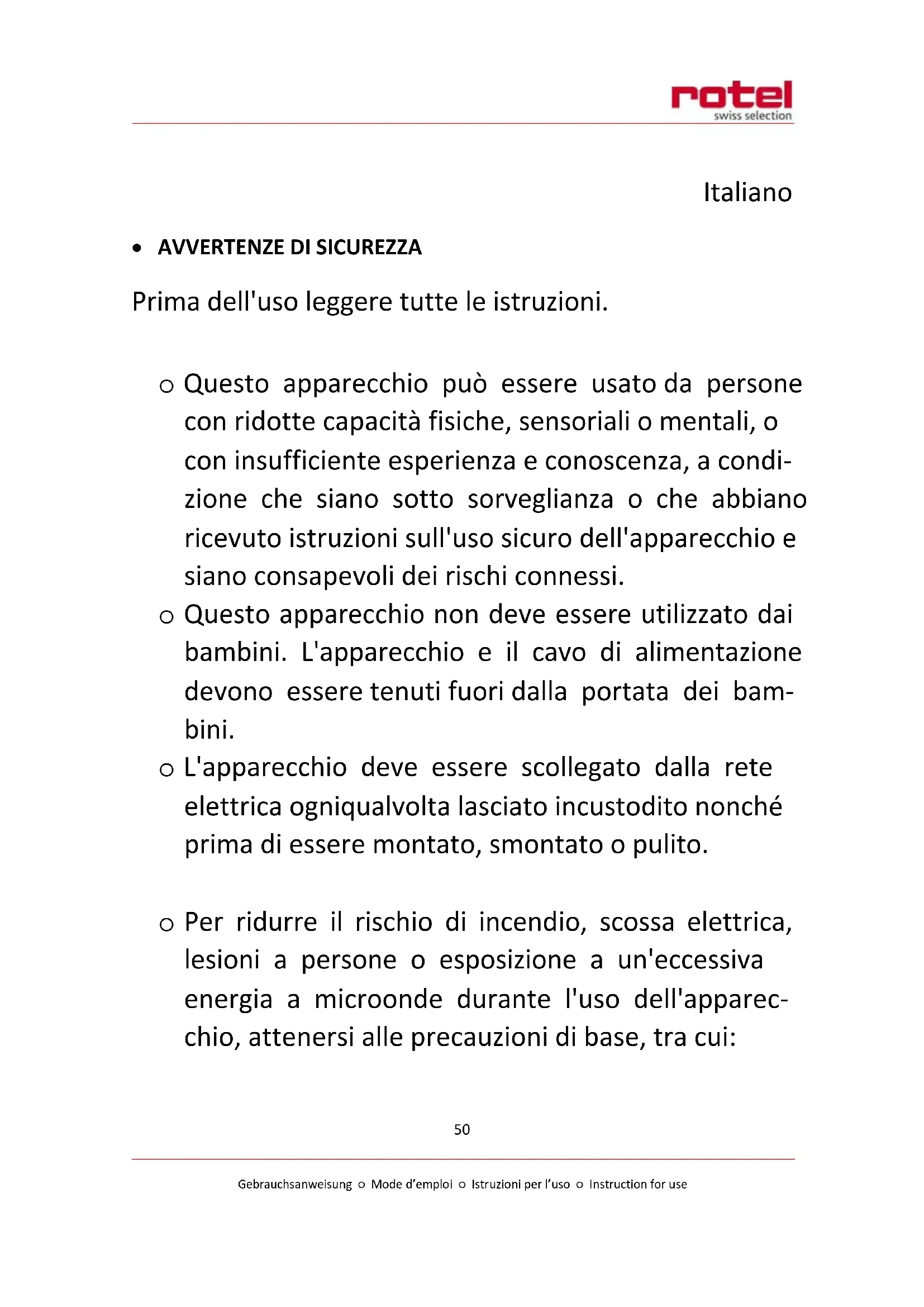 • Avvertenze di sicurezza 50