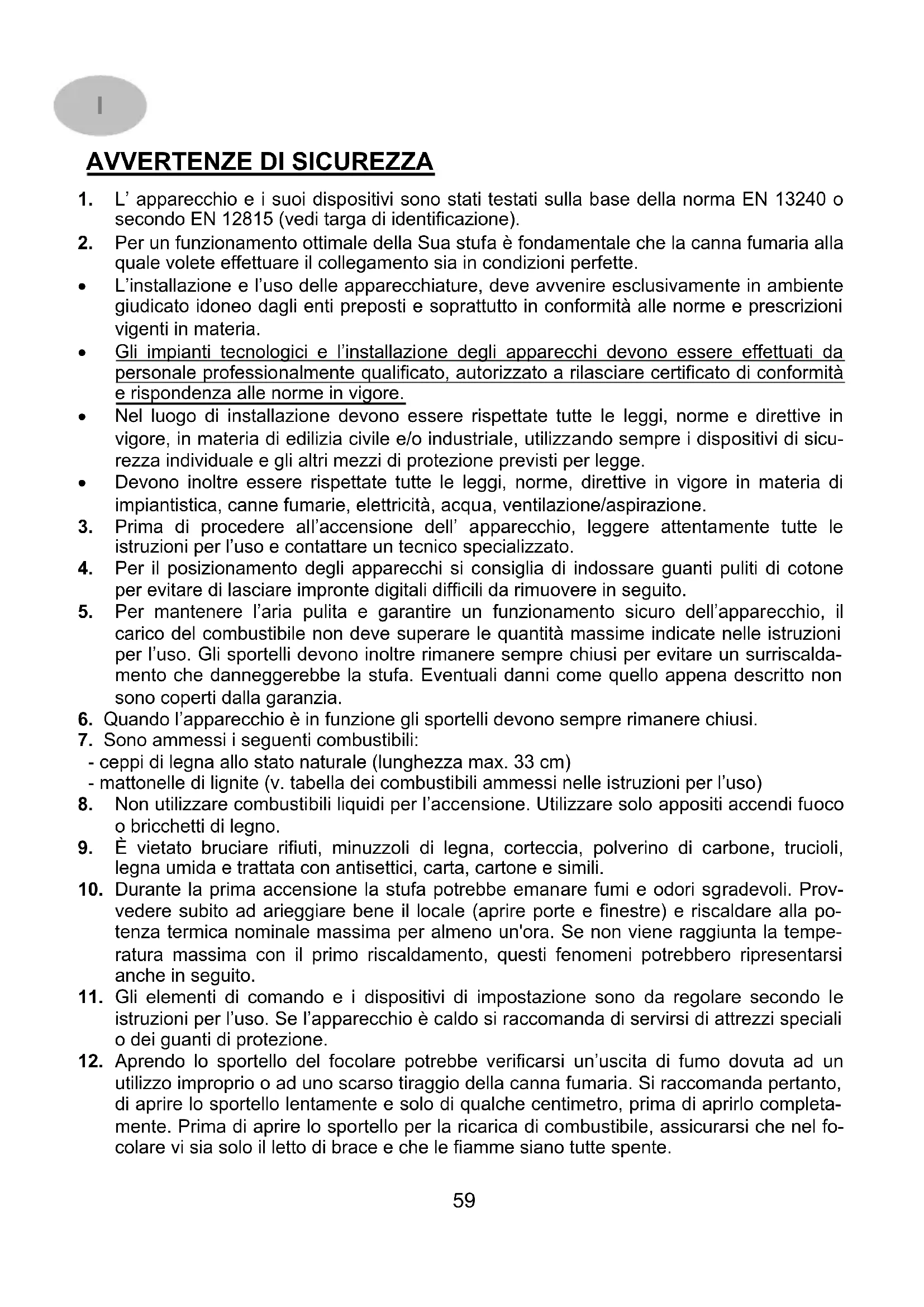 1. L’ apparecchio e i suoi dispositivi sono stati testati sulla base della norma EN 13240 o