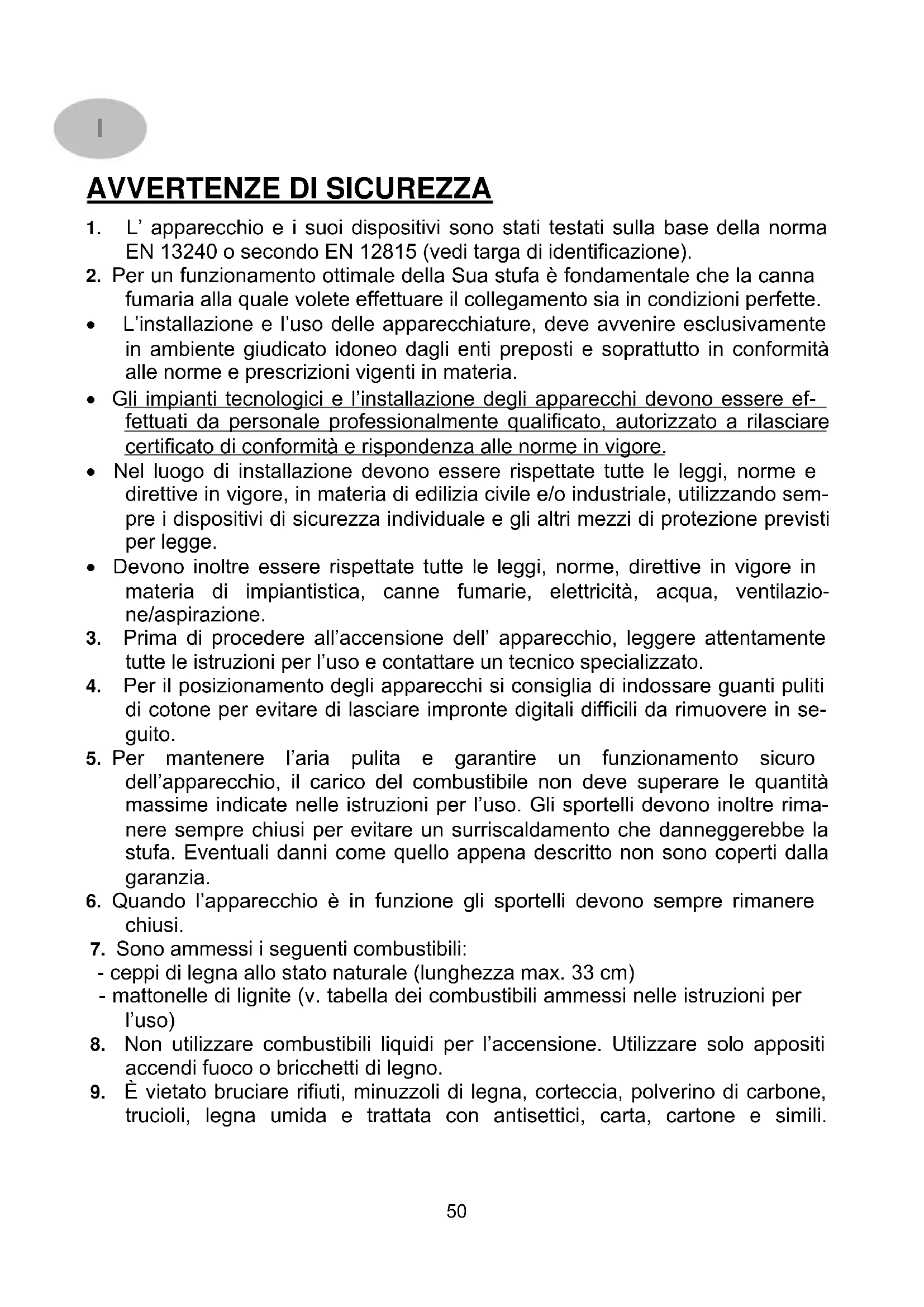 8. Non utilizzare combustibili liquidi per l’accensione. Utilizzare solo appositi