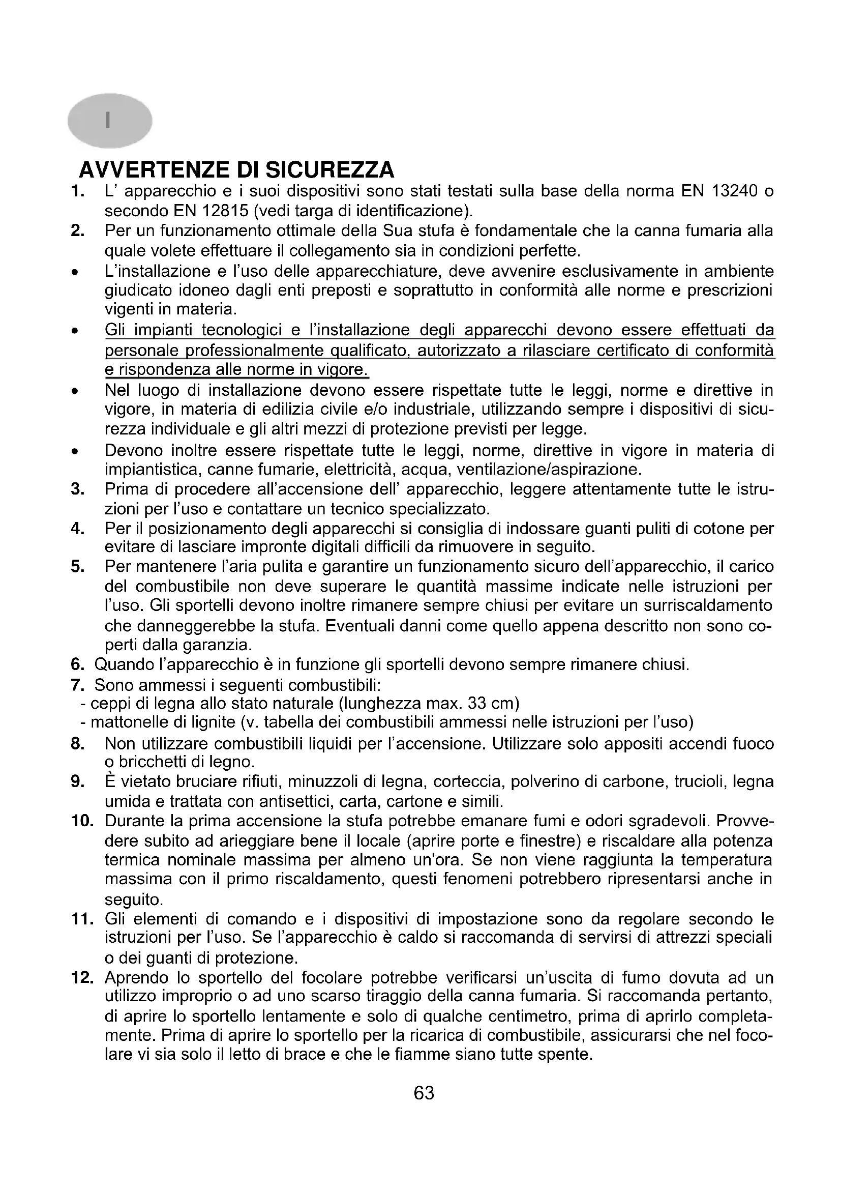 1. L’ apparecchio e i suoi dispositivi sono stati testati sulla base della norma EN 13240 o
