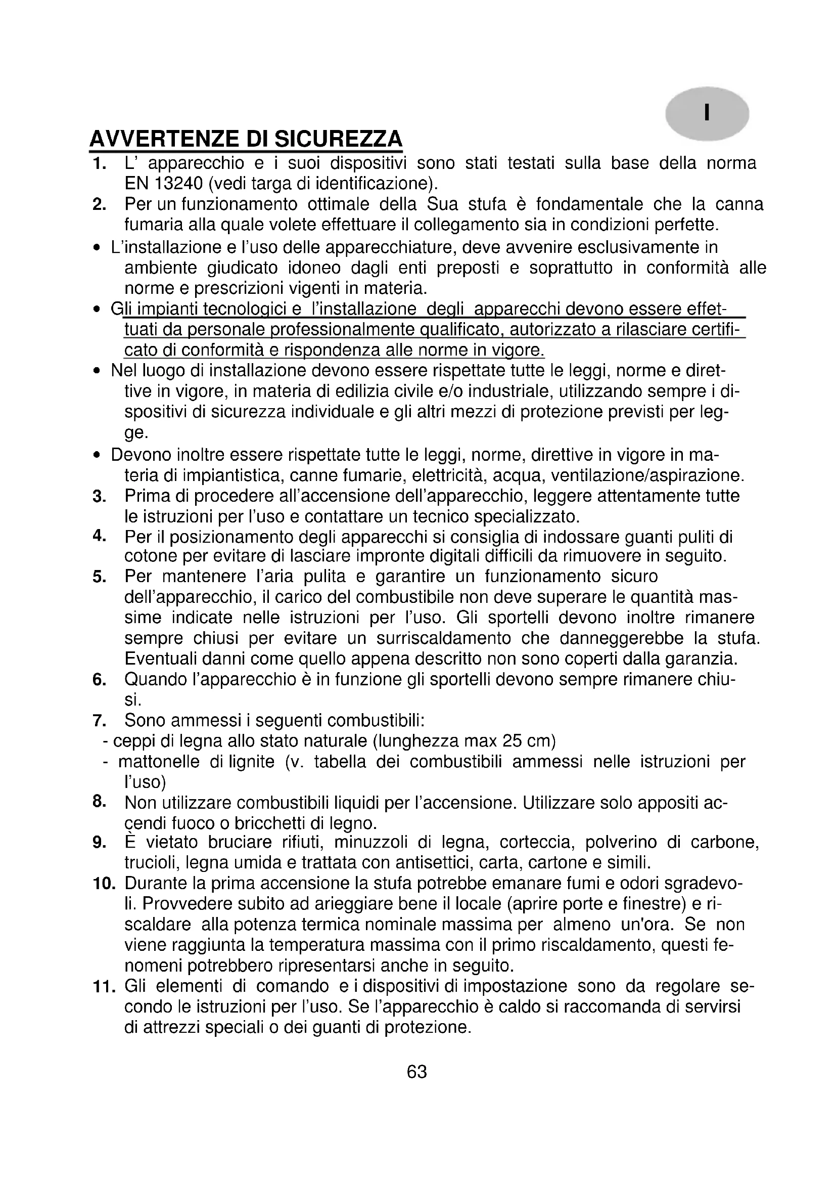 - L'apparecchio e i loro dispositivi sono stati testati sulla base della norma EN 13240 (vedi targa di identificazione).