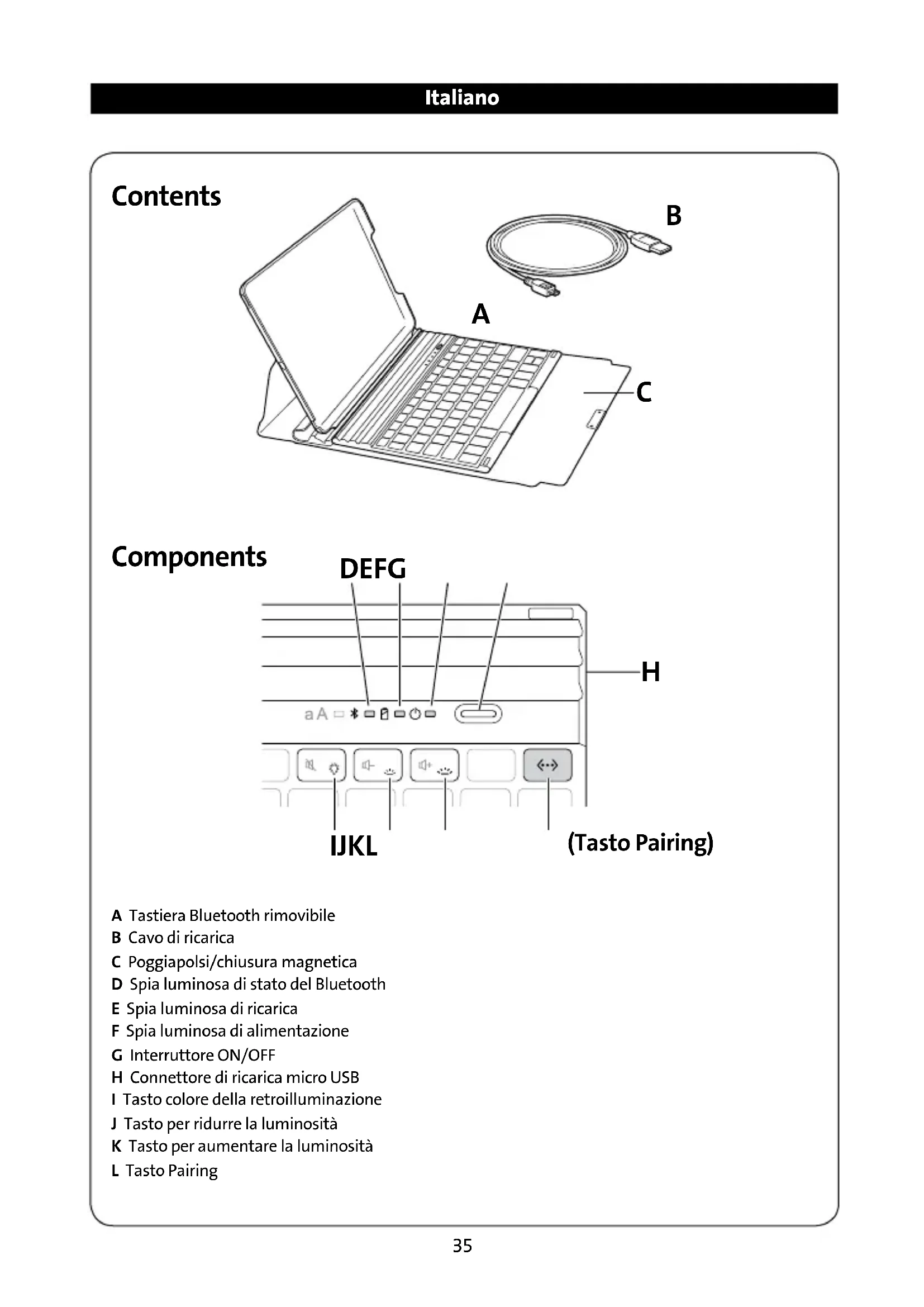 - Per prevenire cortocircuito e altri potenziali rischi, evitare il contatto del KeyFolio con oggetti metallici come monete o chiave non inseire oggetti estranei al suo interno o nelle relative porte.