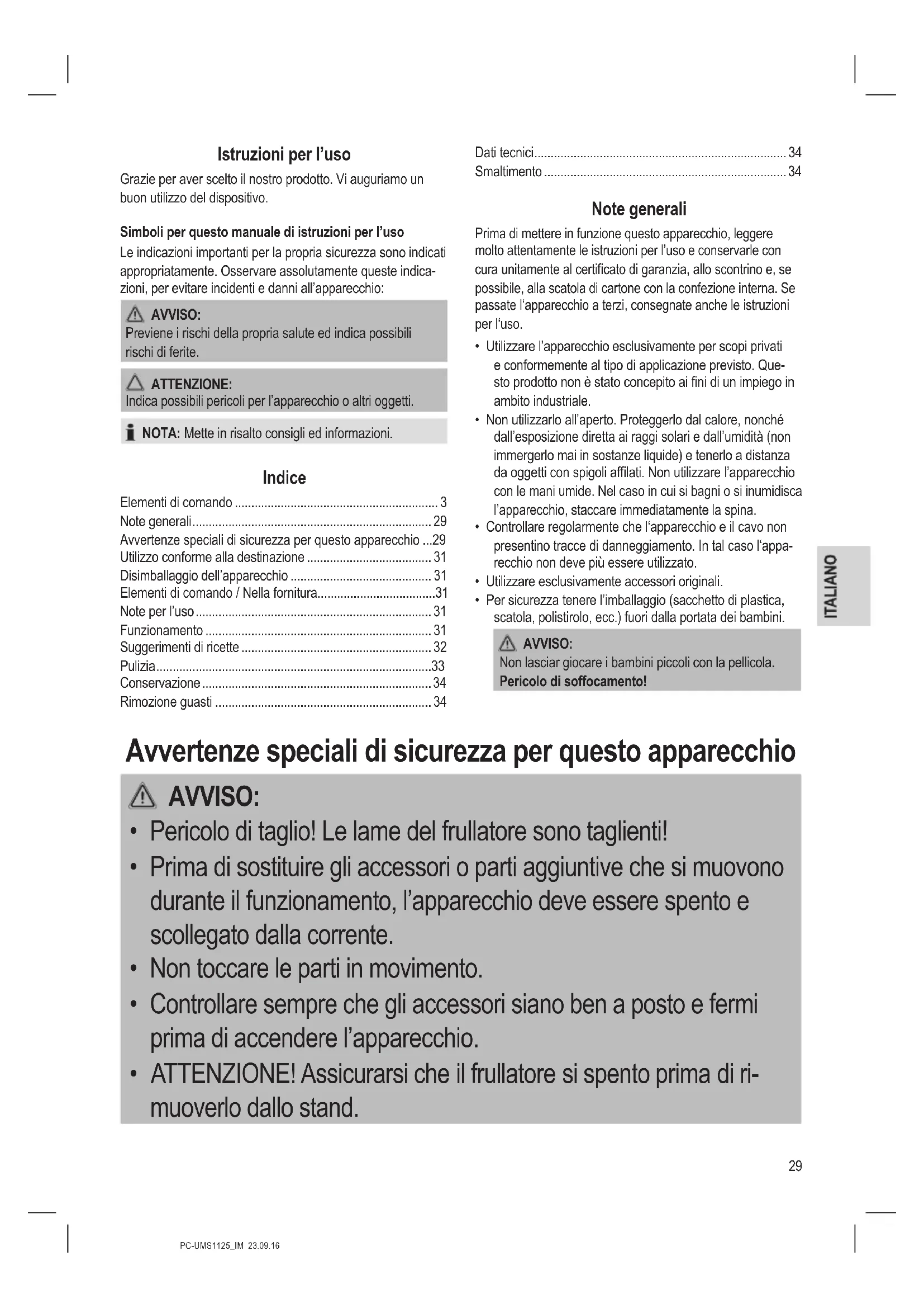 - ATTENZIONE! Assicurarsi che il frullatore si spento prima di ri- muoverlo dallo stand.30 PC-UMS1125_IM 23.09.16 AVVISO: