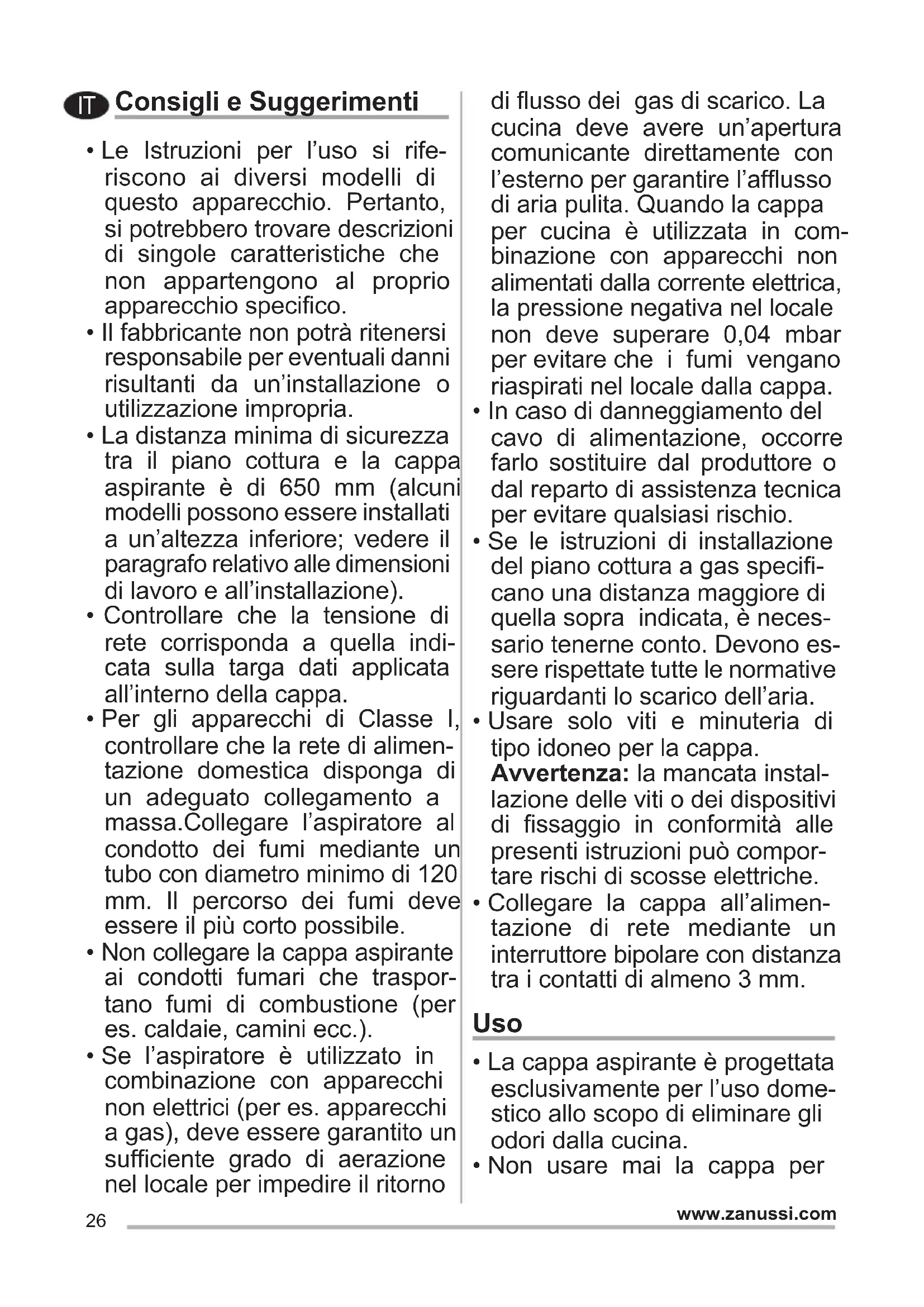 - Non usare mai la cappa per IT27 www.zanussi.com scopi diversi da quelli per cui è stata progettata.