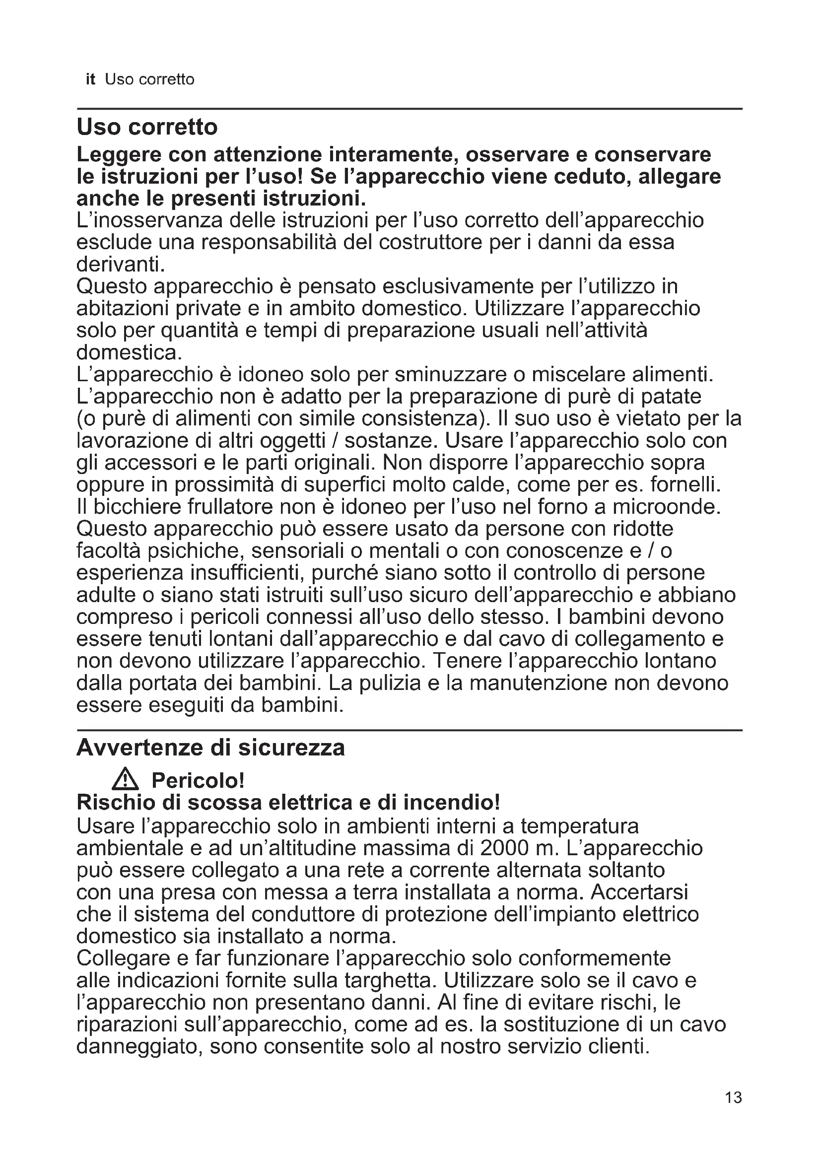 - Avvertenze di sicurezza p. 13