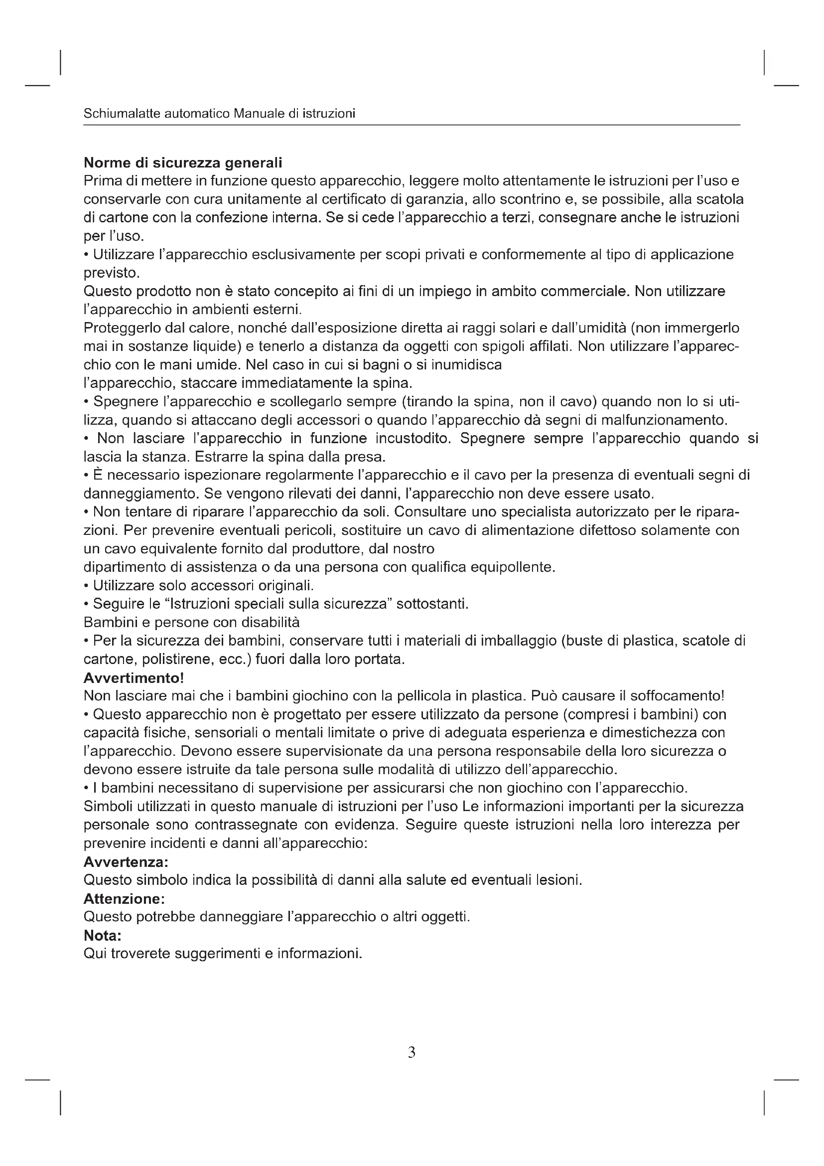SCHIUMALATTE AUTOMATICO - MANUALE DI STRUZIONI