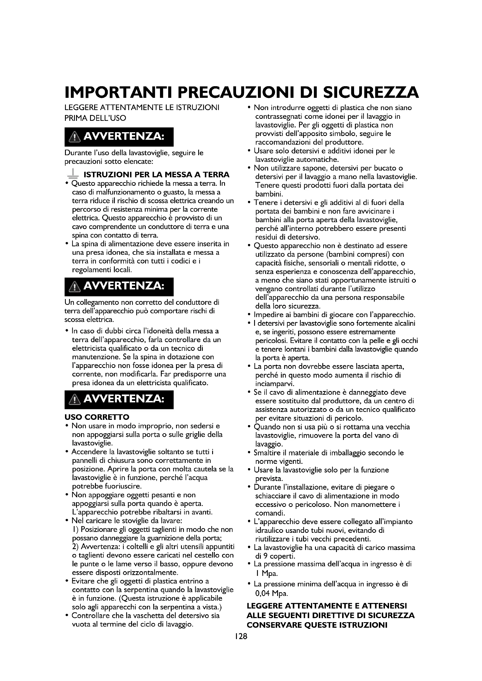 Durante l’uso della lavastoviglie, seguire le precauzioni sotto elencate: