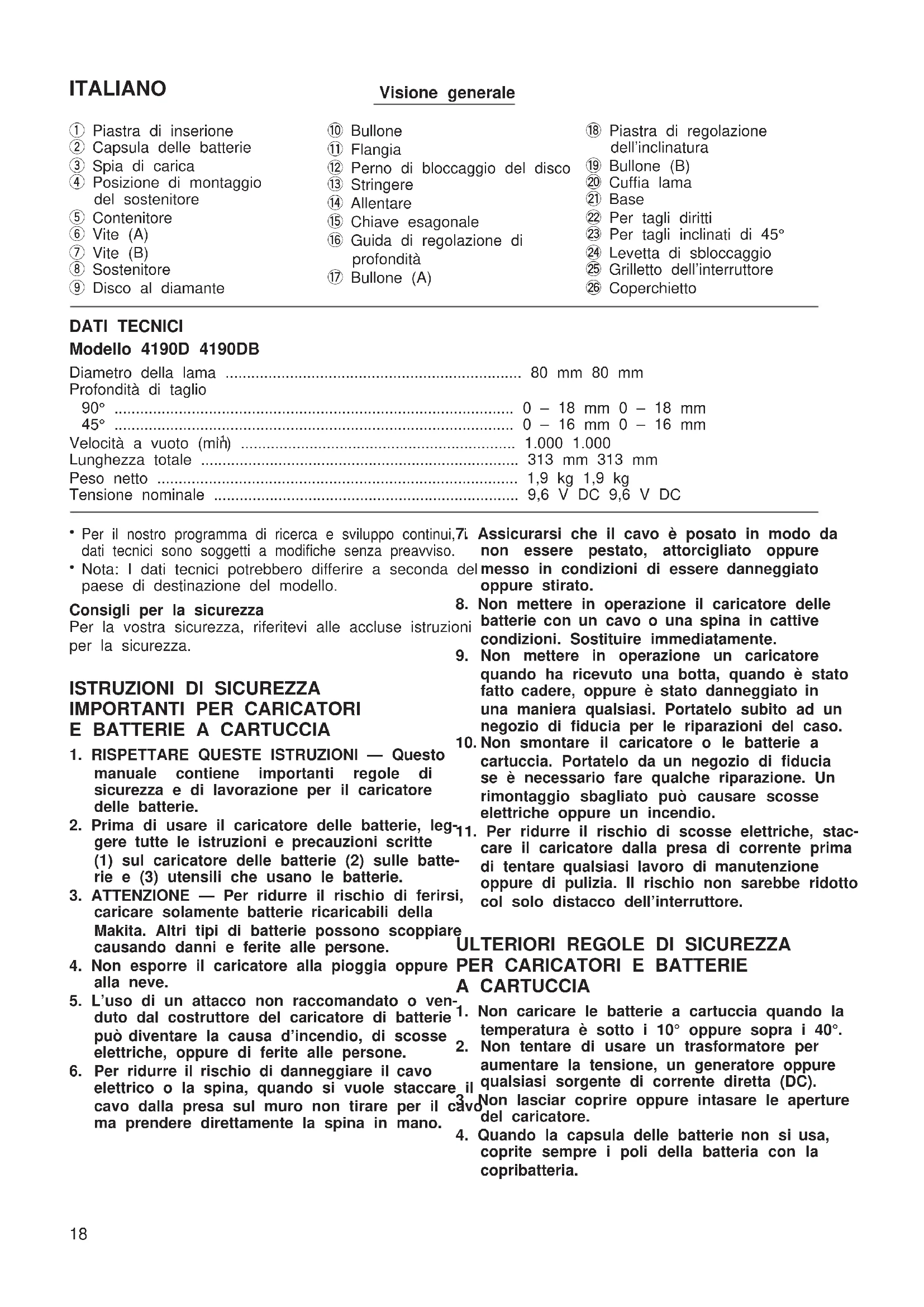 Scarica le istruzioni per il tuo Sega elettrica in formato PDF gratuitamente! Trova il tuo manuale 4190DB - MAKITA e riprendi in mano il tuo dispositivo elettronico. In questa pagina sono pubblicati tutti i documenti necessari per l'utilizzo del tuo dispositivo. 4190DB del marchio MAKITA.