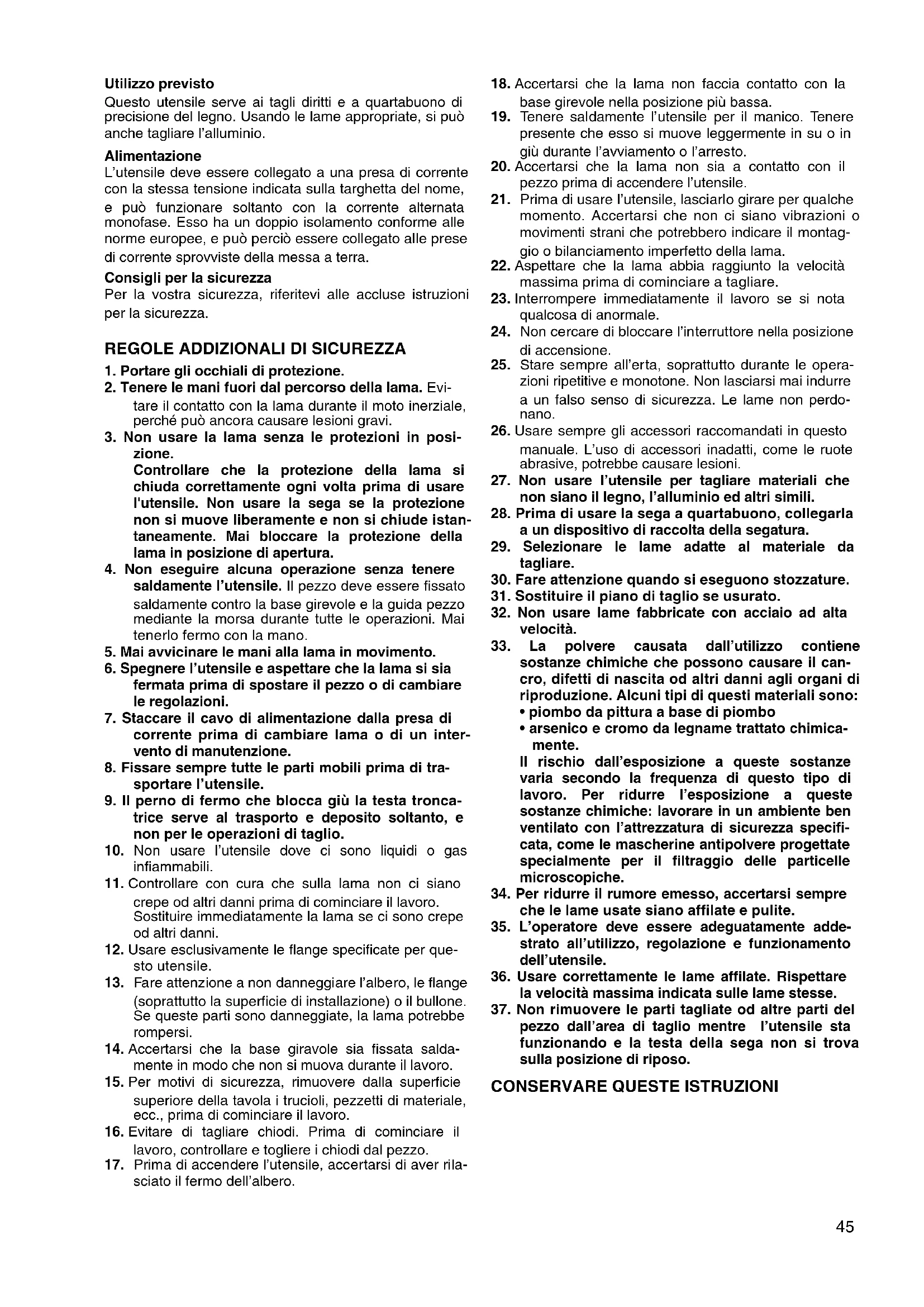 28. Prima di usare la sega a quartabuono, collegarla