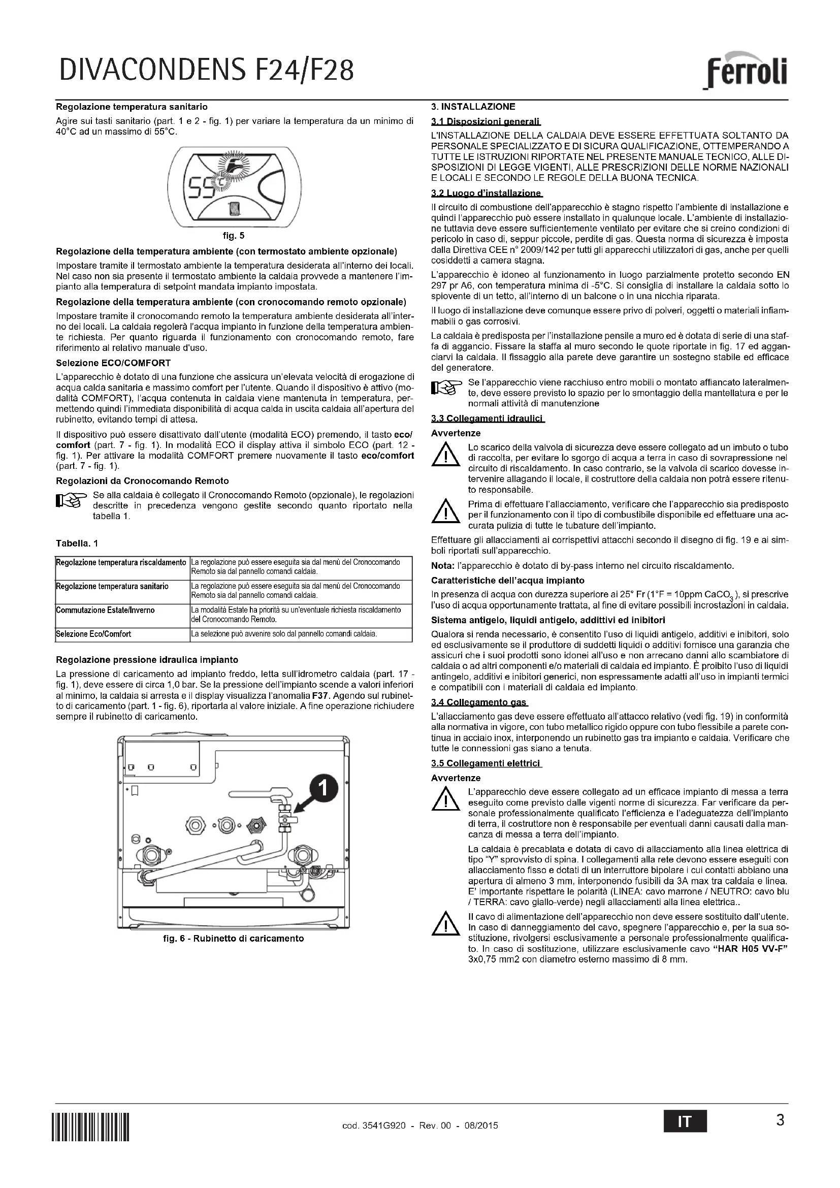 DIVAcondens F28 - Caldaia FERROLI - Manuale utente e istruzioni gratuiti