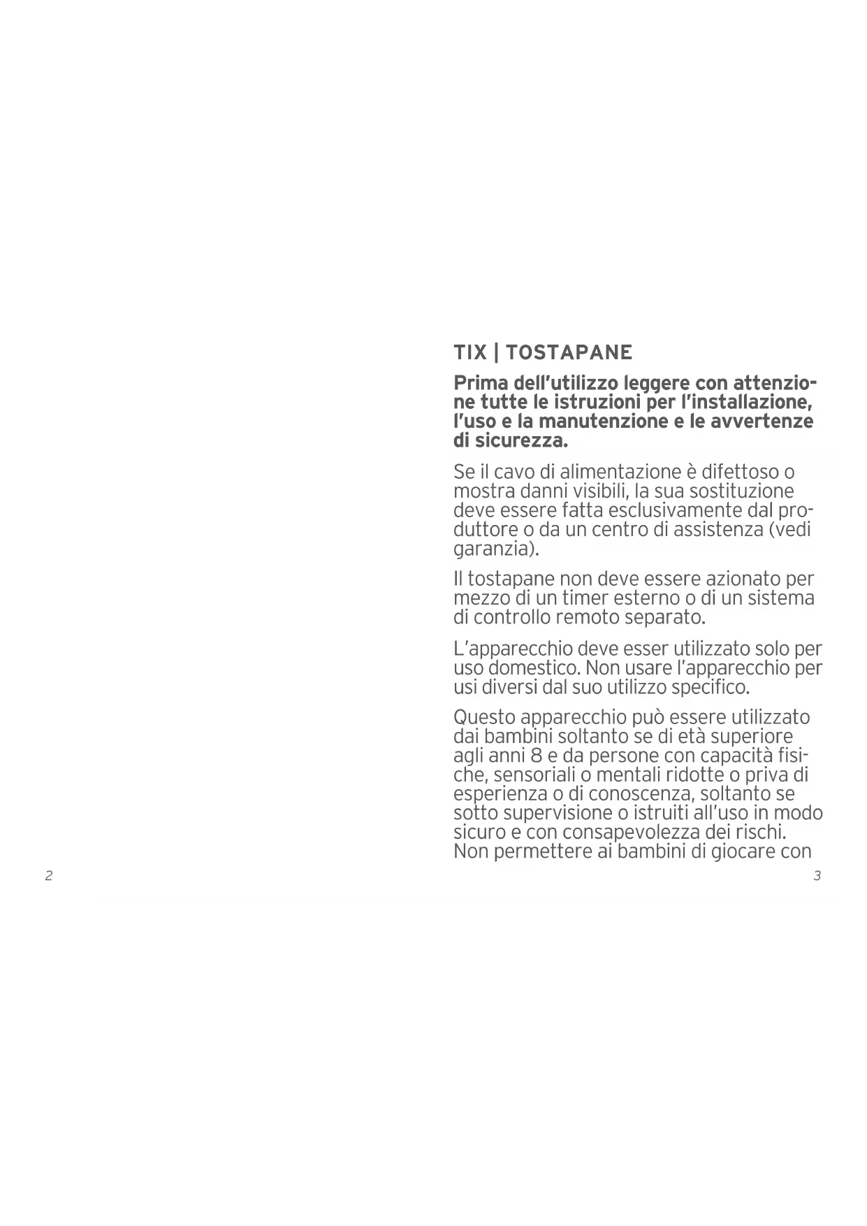 Attenersi scrupolosamente alle norme di sicurezza sulla specificate in tutti i puniti. Il tostpane vuo emettre un odore pungente o produire un leggero fumo la prima volta che viene usato: lasciarlo funzionare per una o due volte nellapane per eliminare l'odore ed eventuali residui.