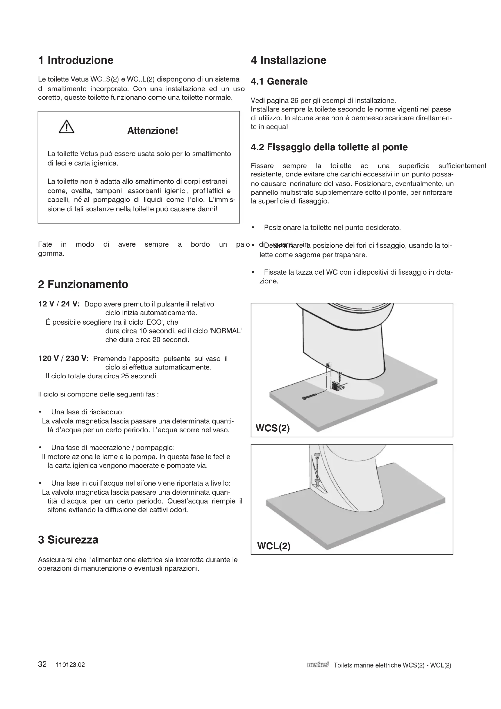 - FissatelatazzadelWCconidispositividifissaggioindota- zione. WCS(2) WCL(2)110123.02 33Toilets marine elettriche WCS(2) - WCL(2) ITALIANO
