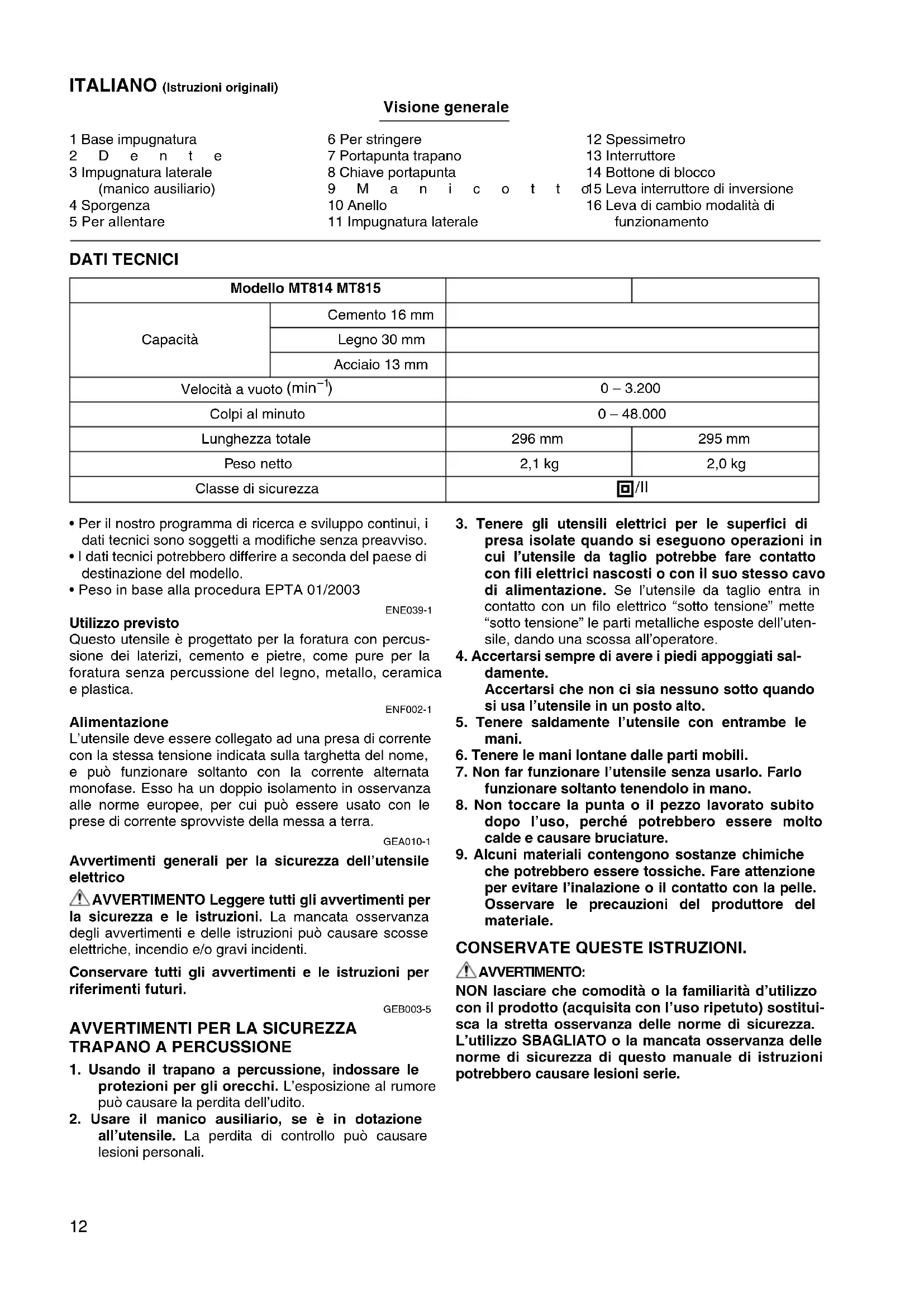 Scarica le istruzioni per il tuo Trapano in formato PDF gratuitamente! Trova il tuo manuale MT815 - Maktec e riprendi in mano il tuo dispositivo elettronico. In questa pagina sono pubblicati tutti i documenti necessari per l'utilizzo del tuo dispositivo. MT815 del marchio Maktec.