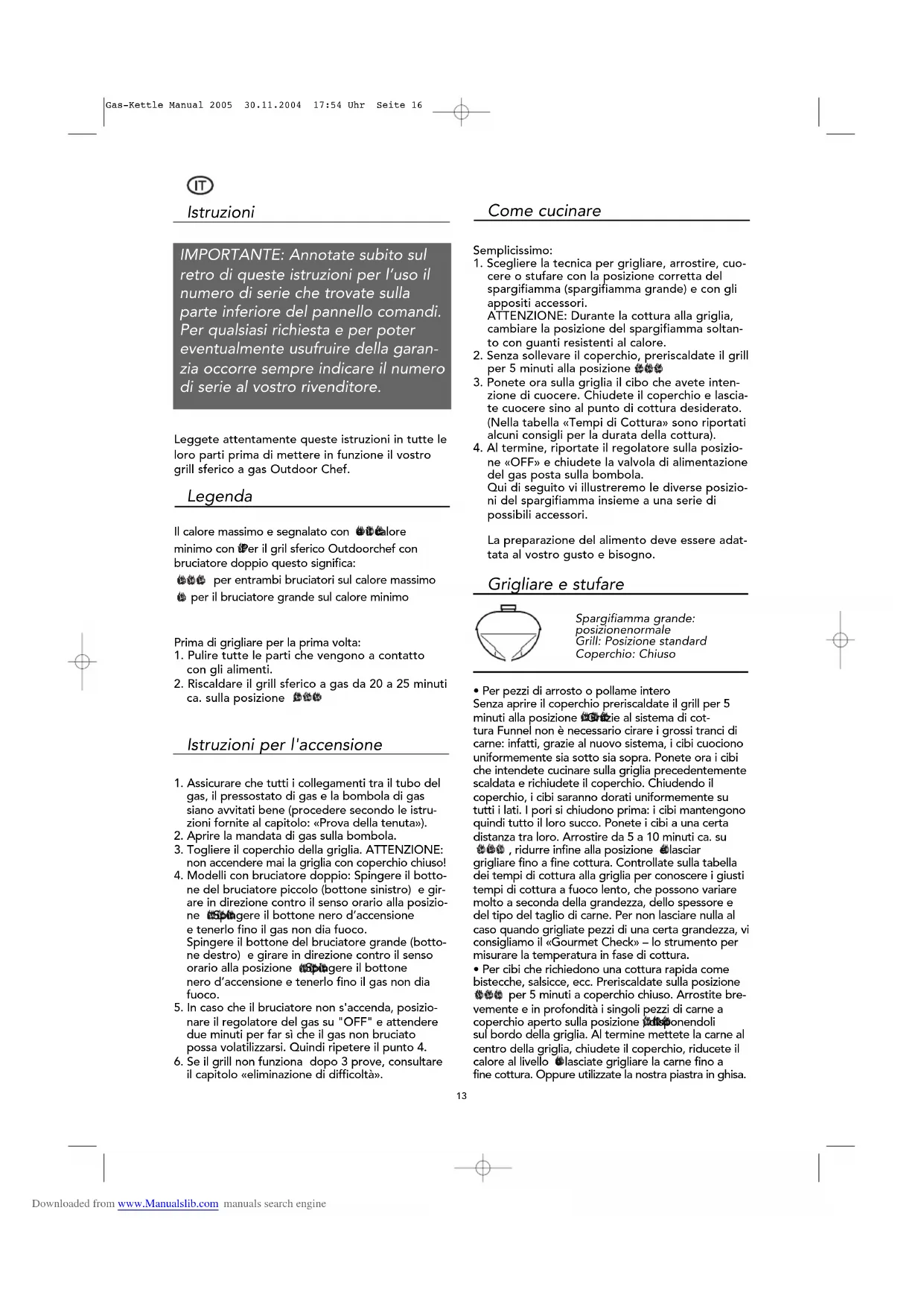 ca. sulla posizione . Legenda Gas-Kettle Manual 2005 30.11.2004 17:54 Uhr Seite 16 Downloaded from www.Manualslib.com manuals search engineCottura con la padella universale Spargifiamma grande: posizione rovesciata Griglia: toglierla e sostituirla con la padella universale Coperchio: toglierlo Accessorio optional: padella universale Grigliare sulla piastra in ghisa Spargifiamma grande: posizione rovesciata Griglia: toglierla e sostituirla con la piastra in ghisa Coperchio: toglierlo Accessorio optional: piastra in ghisa