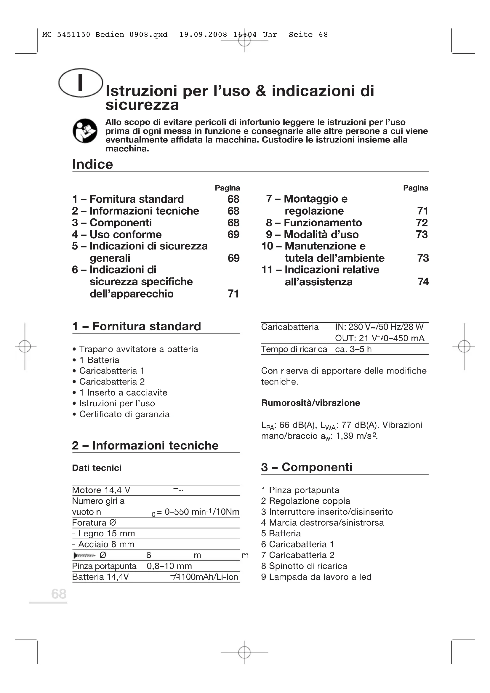 | 5 - Indicazioni di sicurezza generali | 69 | 10 - Manutenzione e tutela dell'ambiente | 73 |