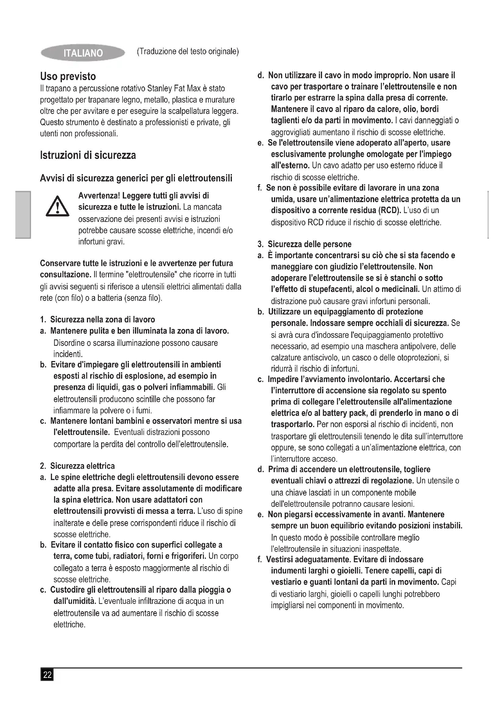 Scarica le istruzioni per il tuo Trapano in formato PDF gratuitamente! Trova il tuo manuale FatMax FME1250 - STANLEY e riprendi in mano il tuo dispositivo elettronico. In questa pagina sono pubblicati tutti i documenti necessari per l'utilizzo del tuo dispositivo. FatMax FME1250 del marchio STANLEY.