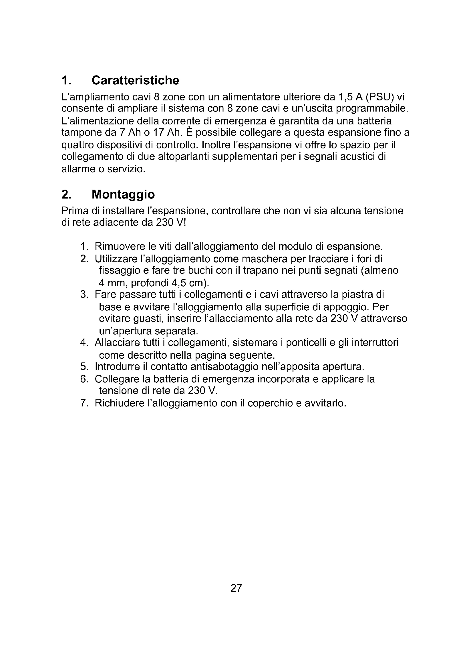 Prima di installare l'espansione, controllare che non vi sia alcuna tensione di rete adiacente da 230 V!