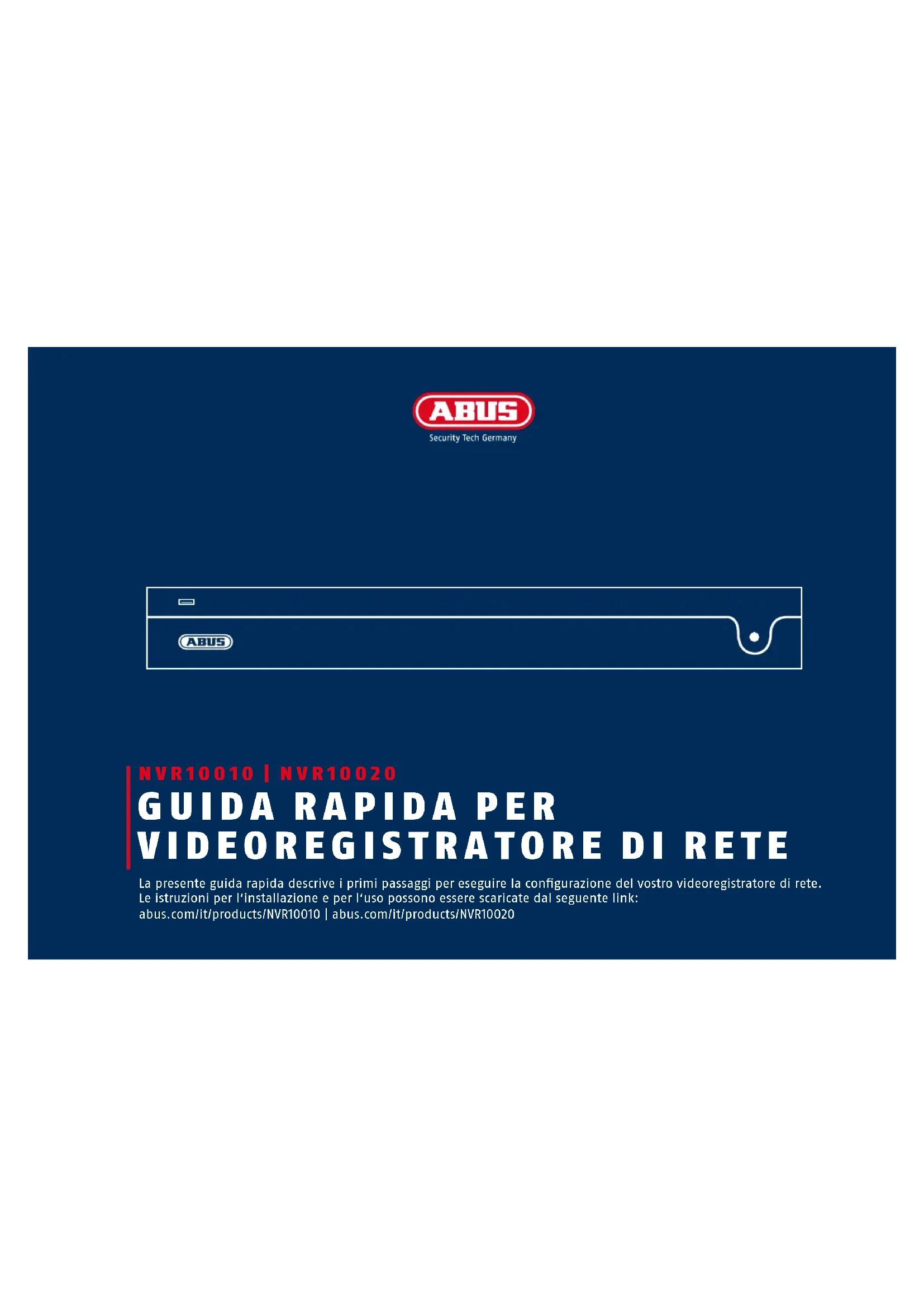 La presente guida rapida descrive i primi passaggi per eseguire la configurazione del vostro videoregistratore di rete. Le istruzioni per l'installazione e per l'uso possono essere scaricate dal seguente link: abus.com/it/products/NVR10010 | abus.com/it/products/NVR10020