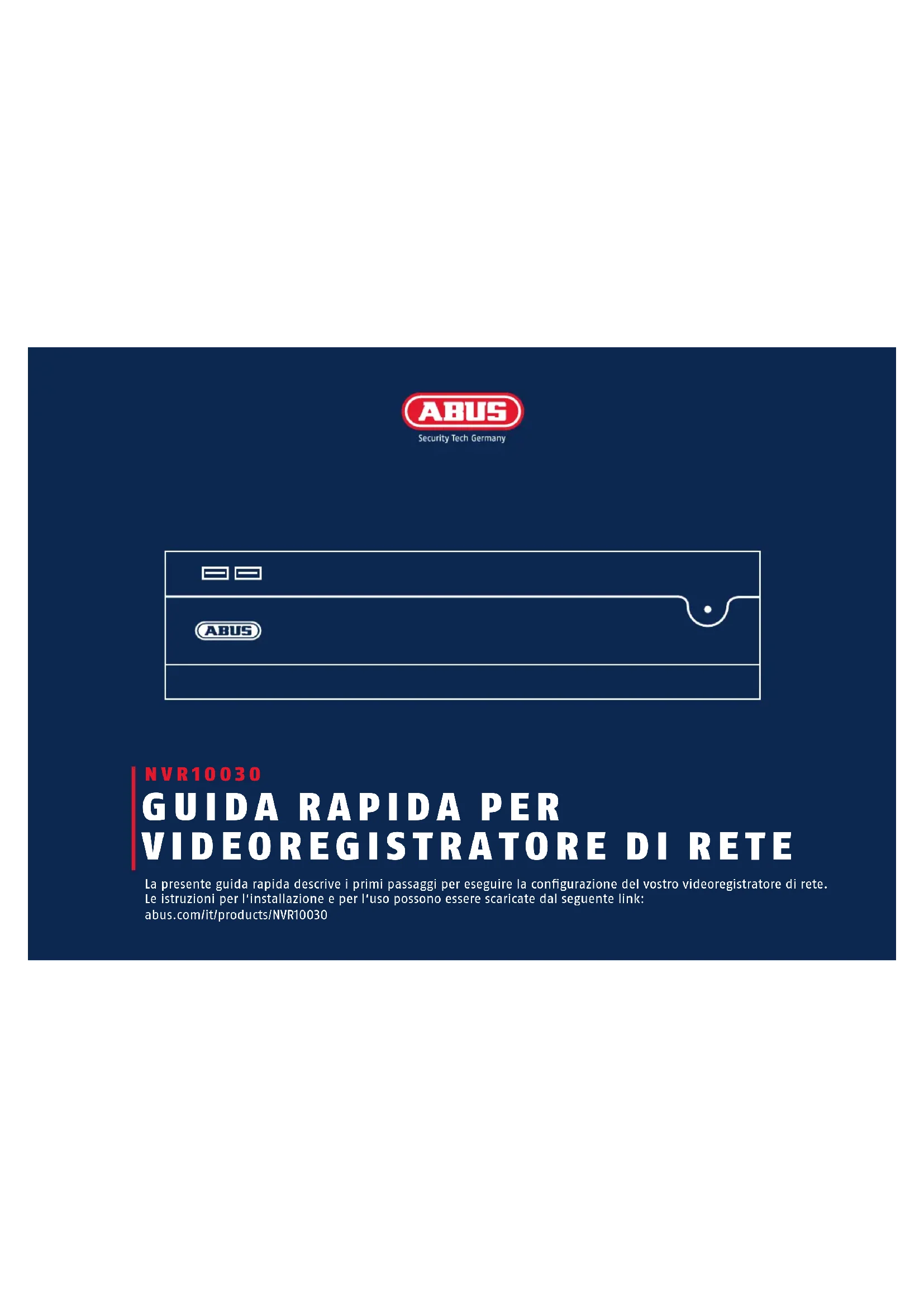 La presente guida rapida descrive i primi passaggi per eseguire la configurazione del vostro videoregistratore di rete. Le istruzioni per l'installazione e per l'uso possono essere scaricate dal seguente link: abus.com/it/products/NVR10030