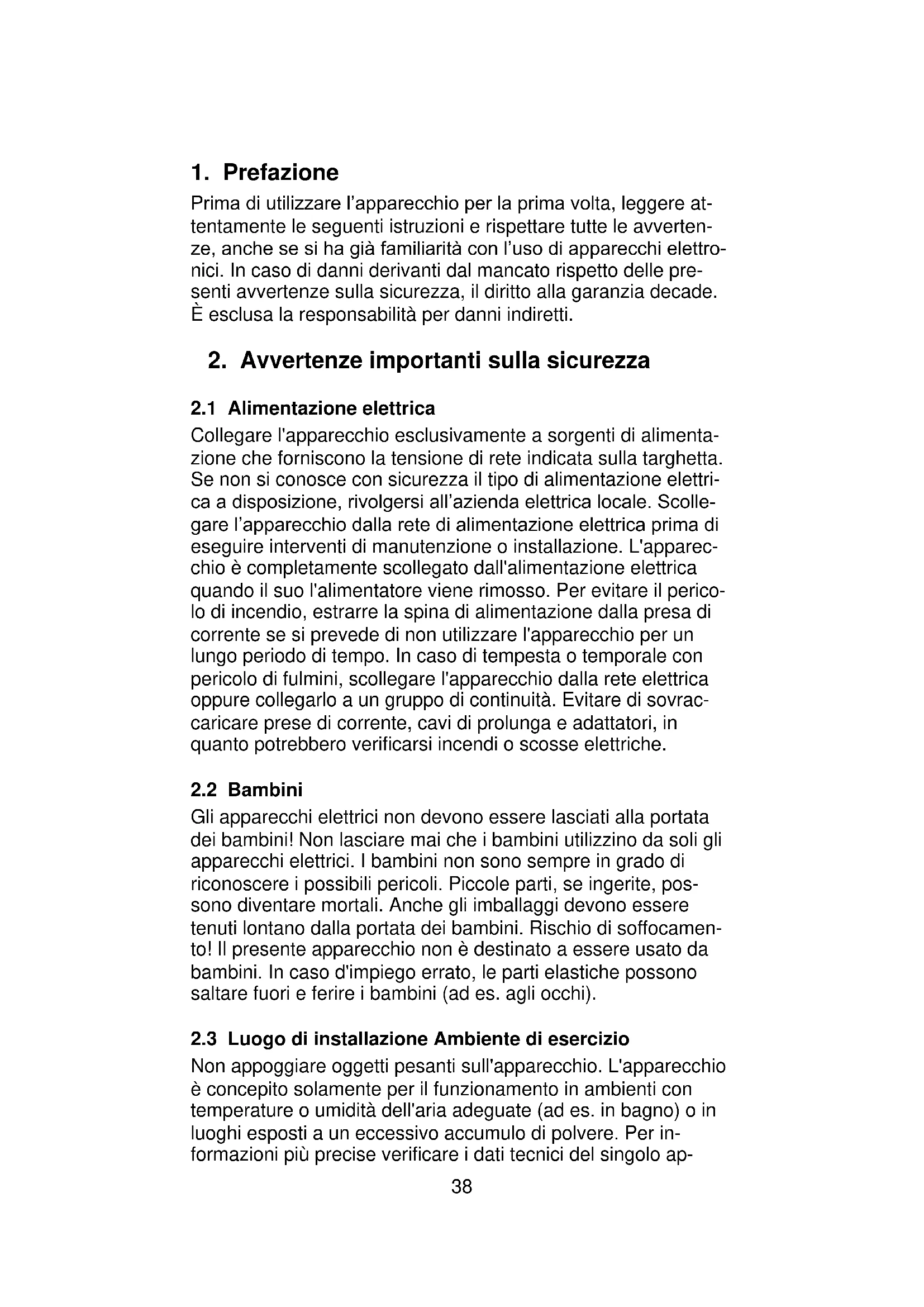 2. Avvertenze importanti sulla sicurezza