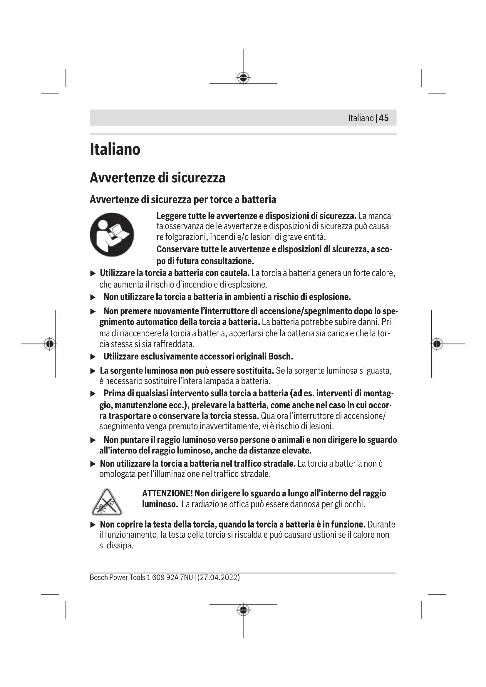 Scarica le istruzioni per il tuo Torcia in formato PDF gratuitamente! Trova il tuo manuale GLI VariLED Professional - BOSCH e riprendi in mano il tuo dispositivo elettronico. In questa pagina sono pubblicati tutti i documenti necessari per l'utilizzo del tuo dispositivo. GLI VariLED Professional del marchio BOSCH.