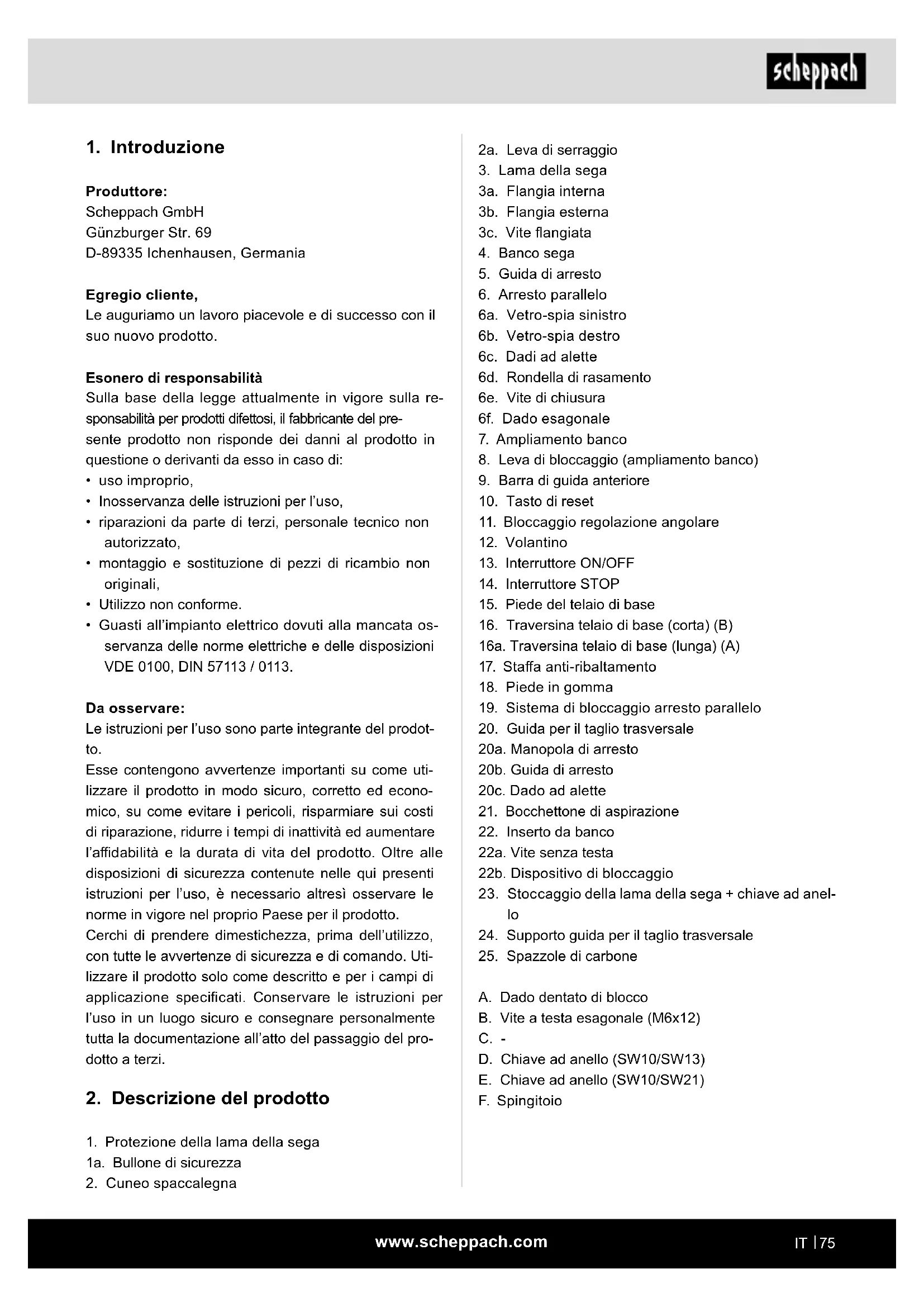 HS105 - Sega SCHEPPACH - Manuale utente e istruzioni gratuiti