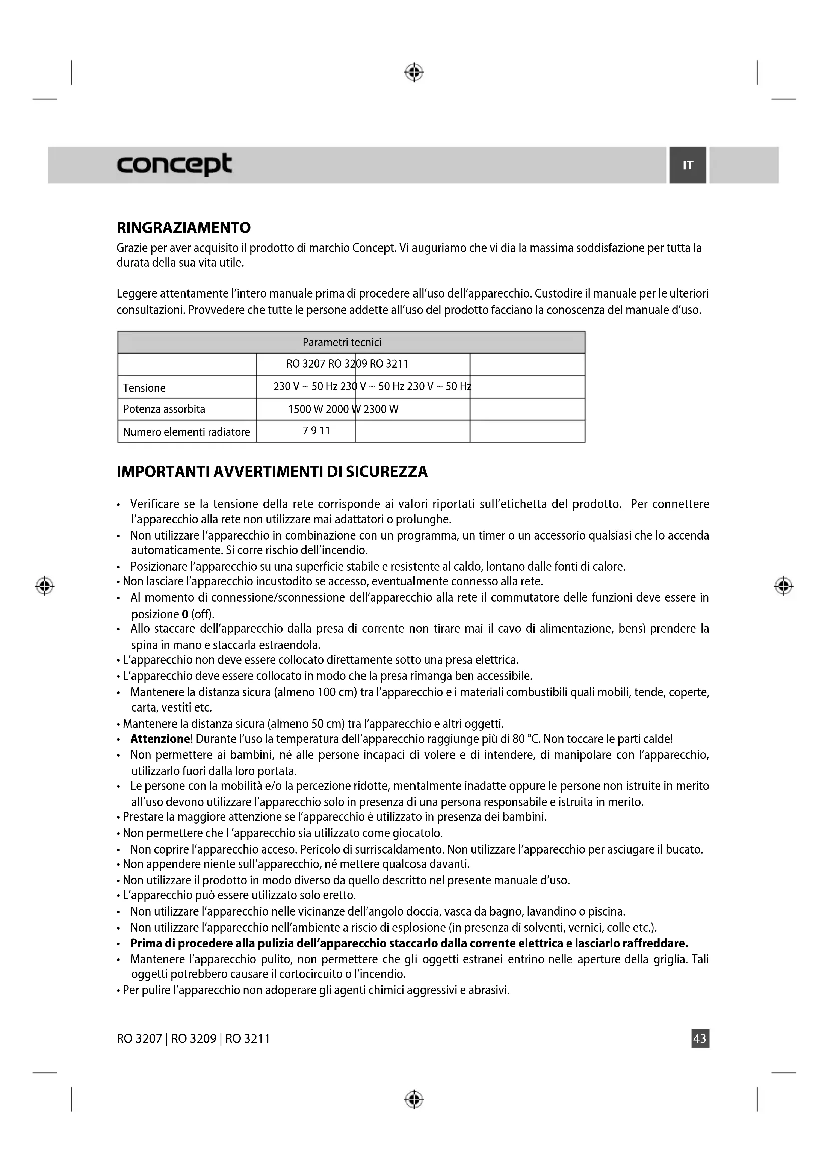 MANUALE UTENTE RO3211 Concept