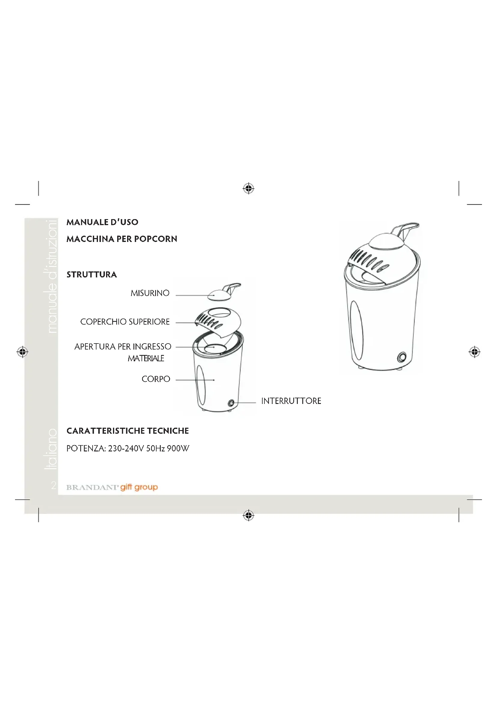 56899 - Macchina per popcorn Brandani - Manuale utente e istruzioni gratuiti