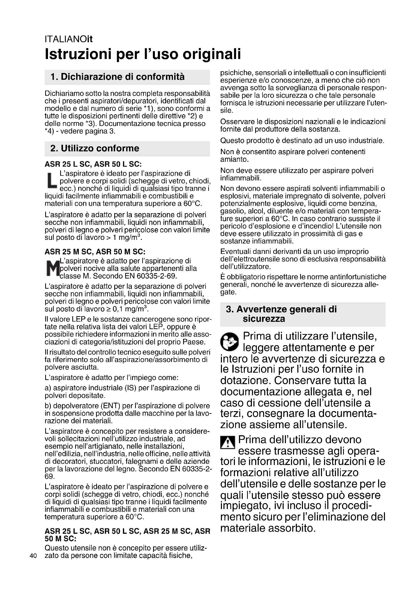 | Tipo di apparecchio | Aspirapolvere industriale |