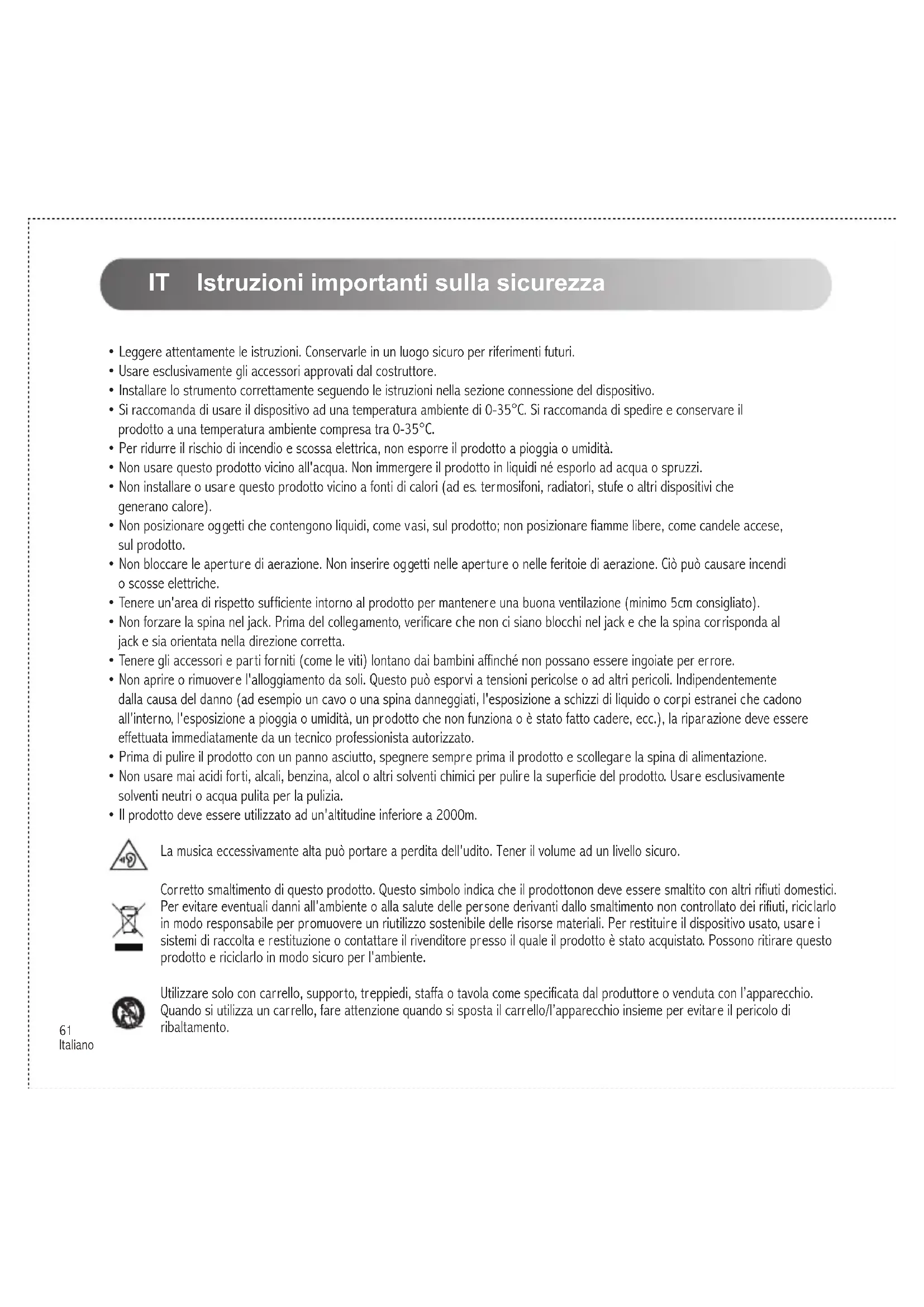 - Leggere attentamente le istruzioni. Conservarle in un luogo sicuro per riferimenti futuri.
