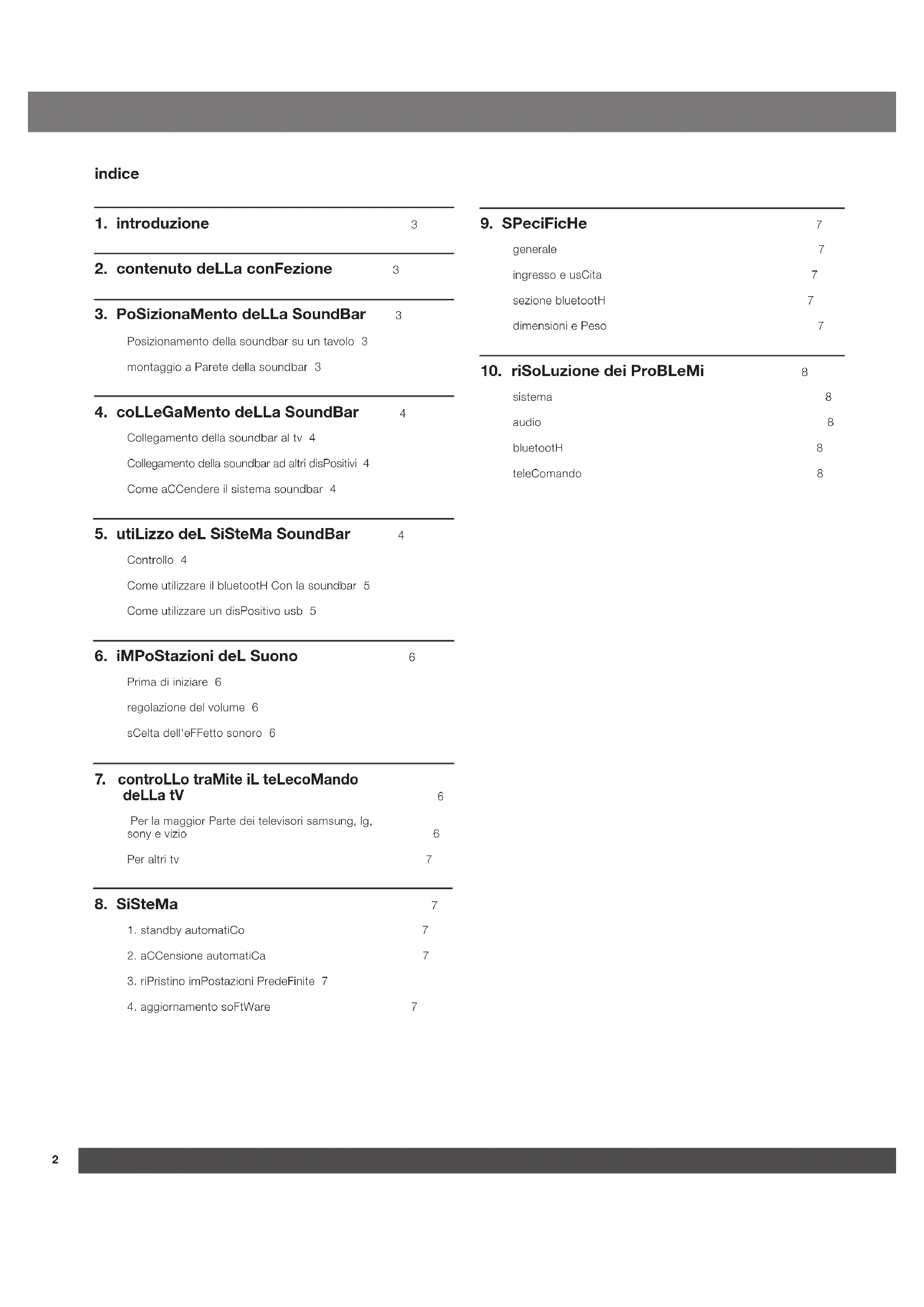 Controllo 4 Come utilizzare il bluetootH Con la soundbar 5 Come utilizzare un disPositivo usb 5