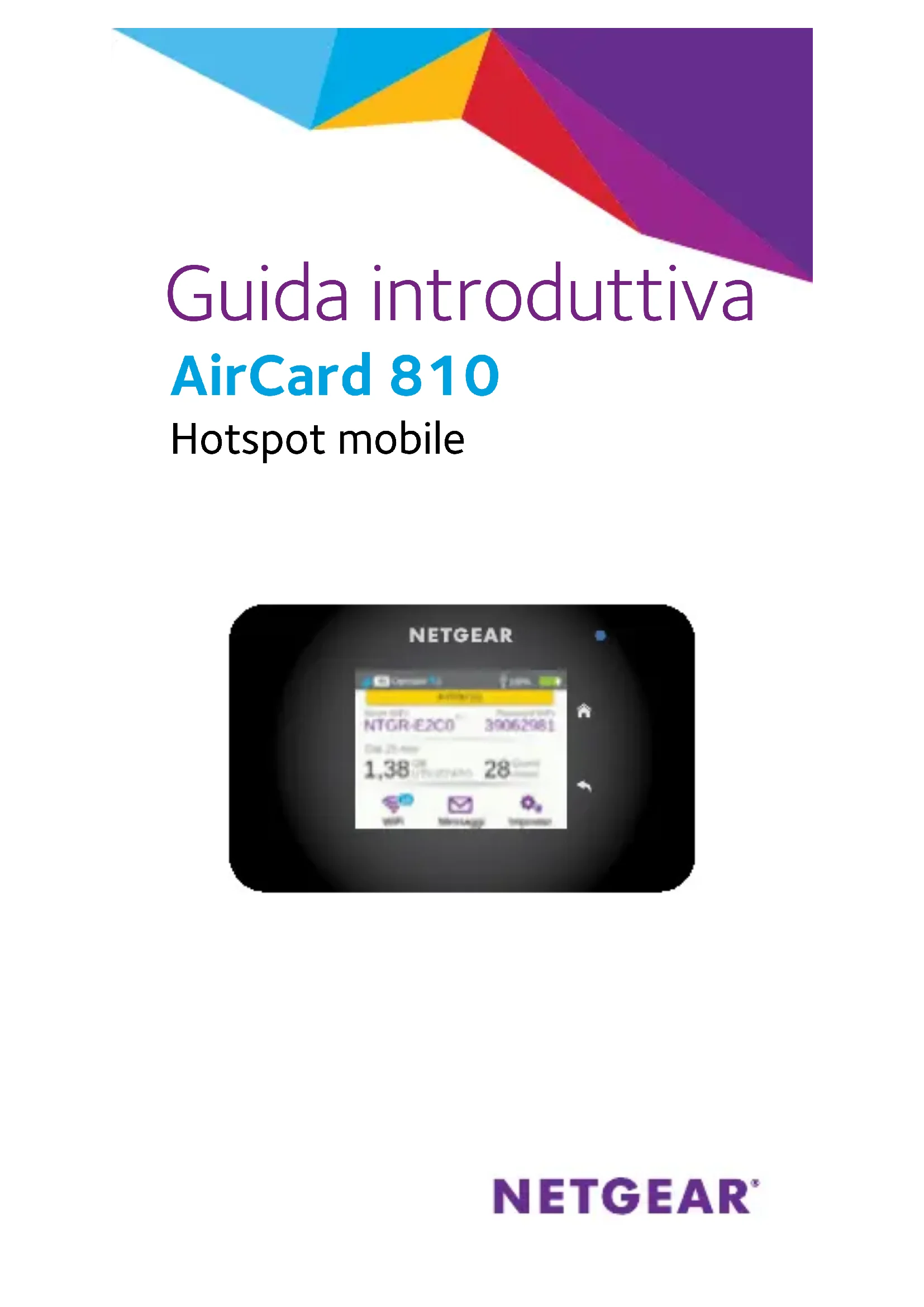 Scarica le istruzioni per il tuo Router in formato PDF gratuitamente! Trova il tuo manuale AirCard 810S - NETGEAR e riprendi in mano il tuo dispositivo elettronico. In questa pagina sono pubblicati tutti i documenti necessari per l'utilizzo del tuo dispositivo. AirCard 810S del marchio NETGEAR.
