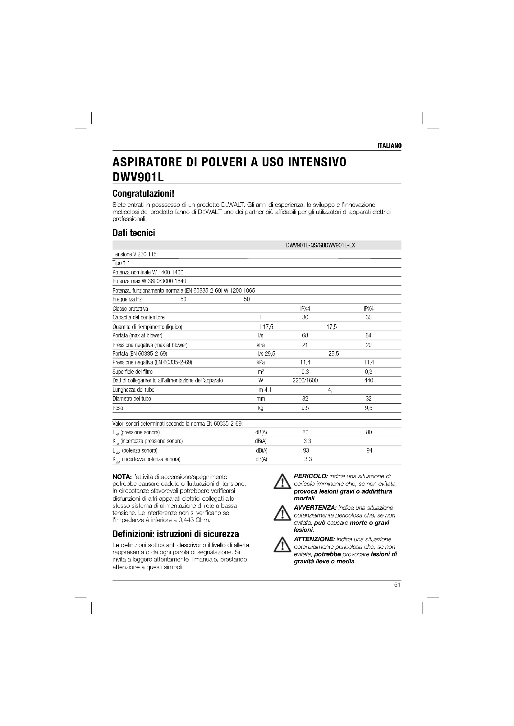 Scarica le istruzioni per il tuo Aspirapolvere in formato PDF gratuitamente! Trova il tuo manuale DWV901L - DEWALT e riprendi in mano il tuo dispositivo elettronico. In questa pagina sono pubblicati tutti i documenti necessari per l'utilizzo del tuo dispositivo. DWV901L del marchio DEWALT.