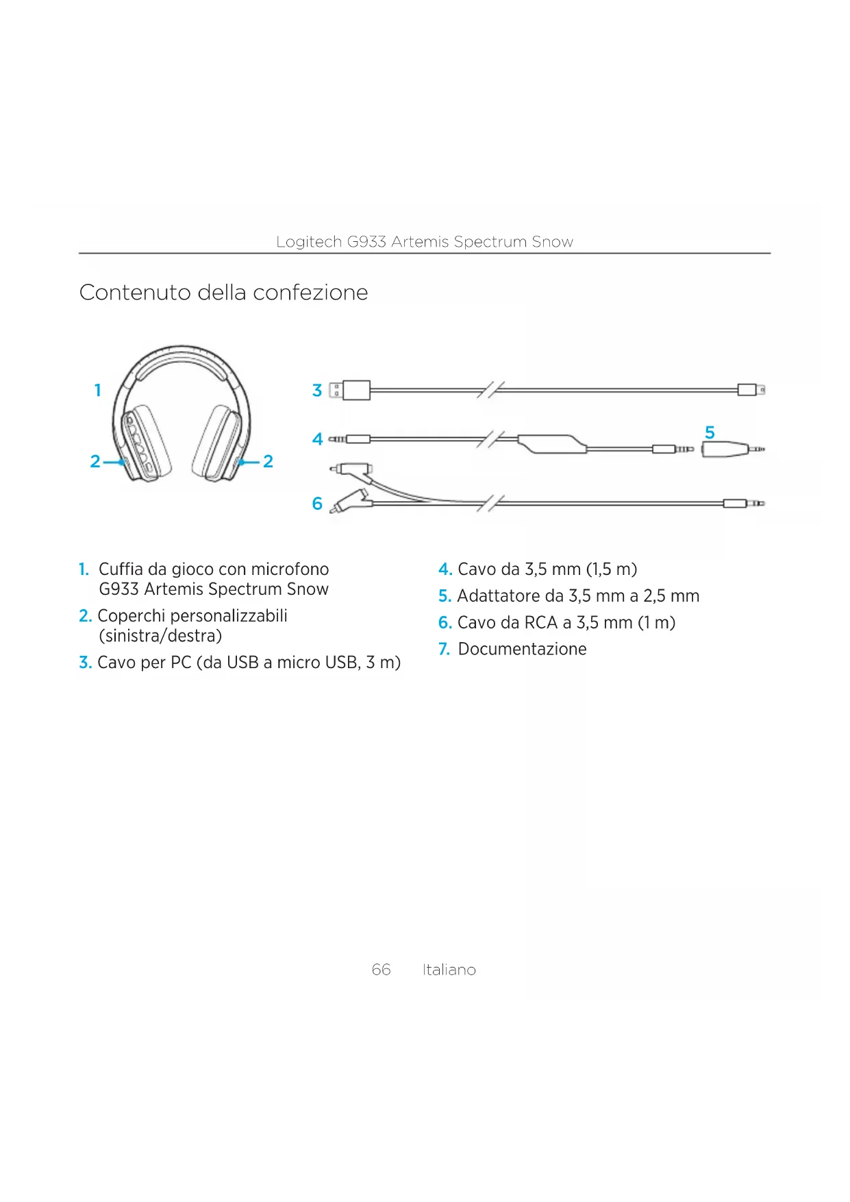 - Connettore da 3,5 mm (solo input stereo)Logitech G933 Artemis Spectrum Snow 68 Italiano Layout pulsanti della cua con microfono