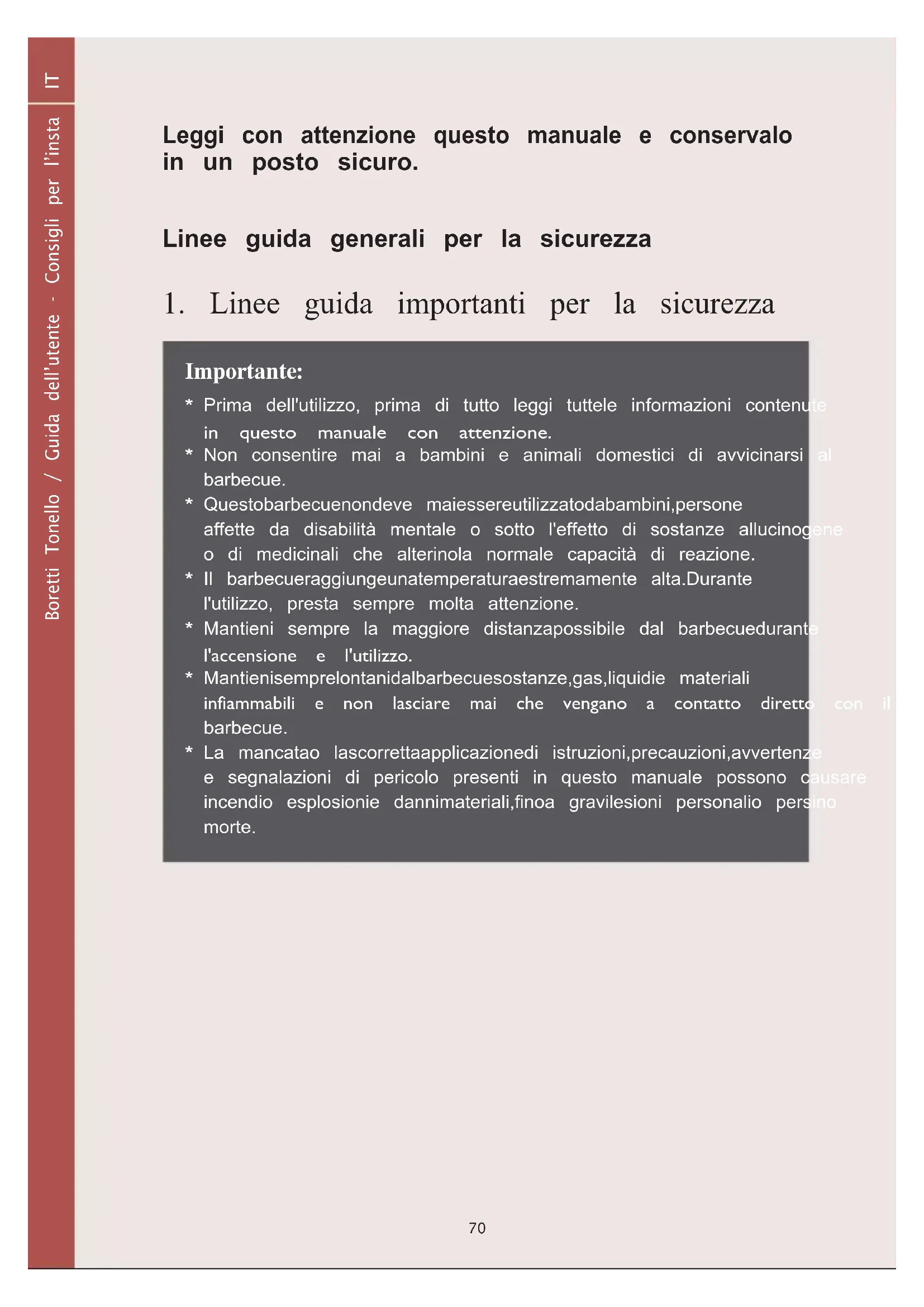 Boretti Tonello / Guida dell’utente - Consigli per l’installazione ITLeggi con attenzione questo manuale e conservalo in un posto sicuro. Linee guida generali per la sicurezza