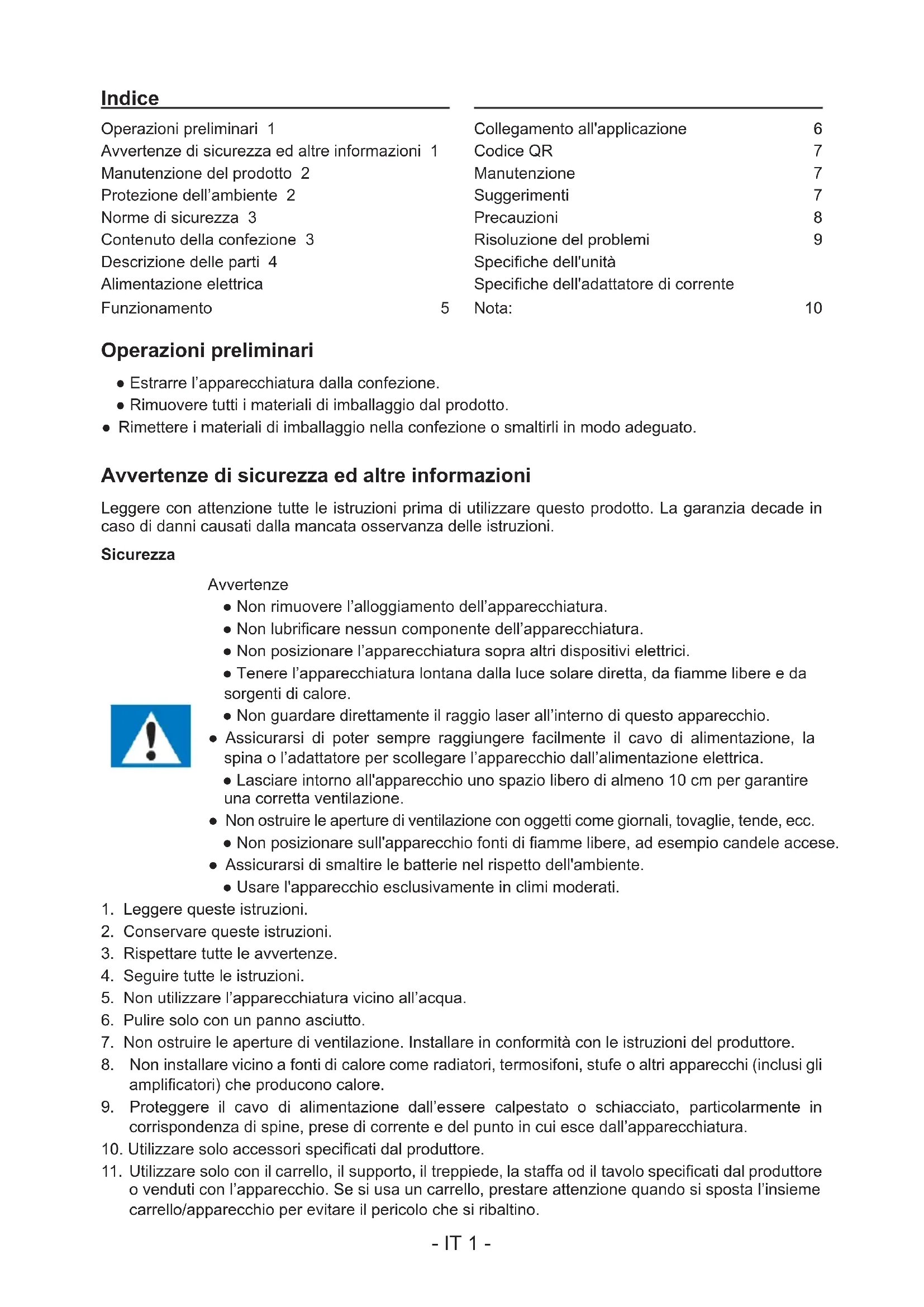 | Avvertenze di sicurezza ed altre informazioni 1 | Codice QR | 7 |