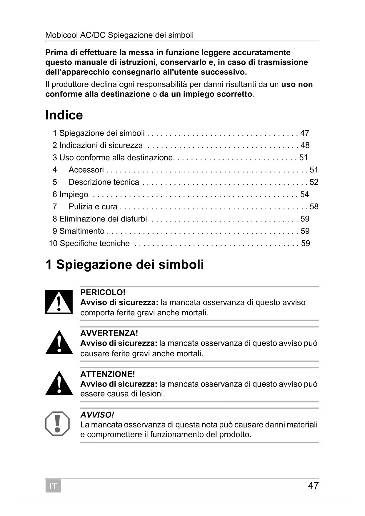 Trova gratuitamente il manuale del dispositivo V30 ACDC Mobicool in formato PDF.