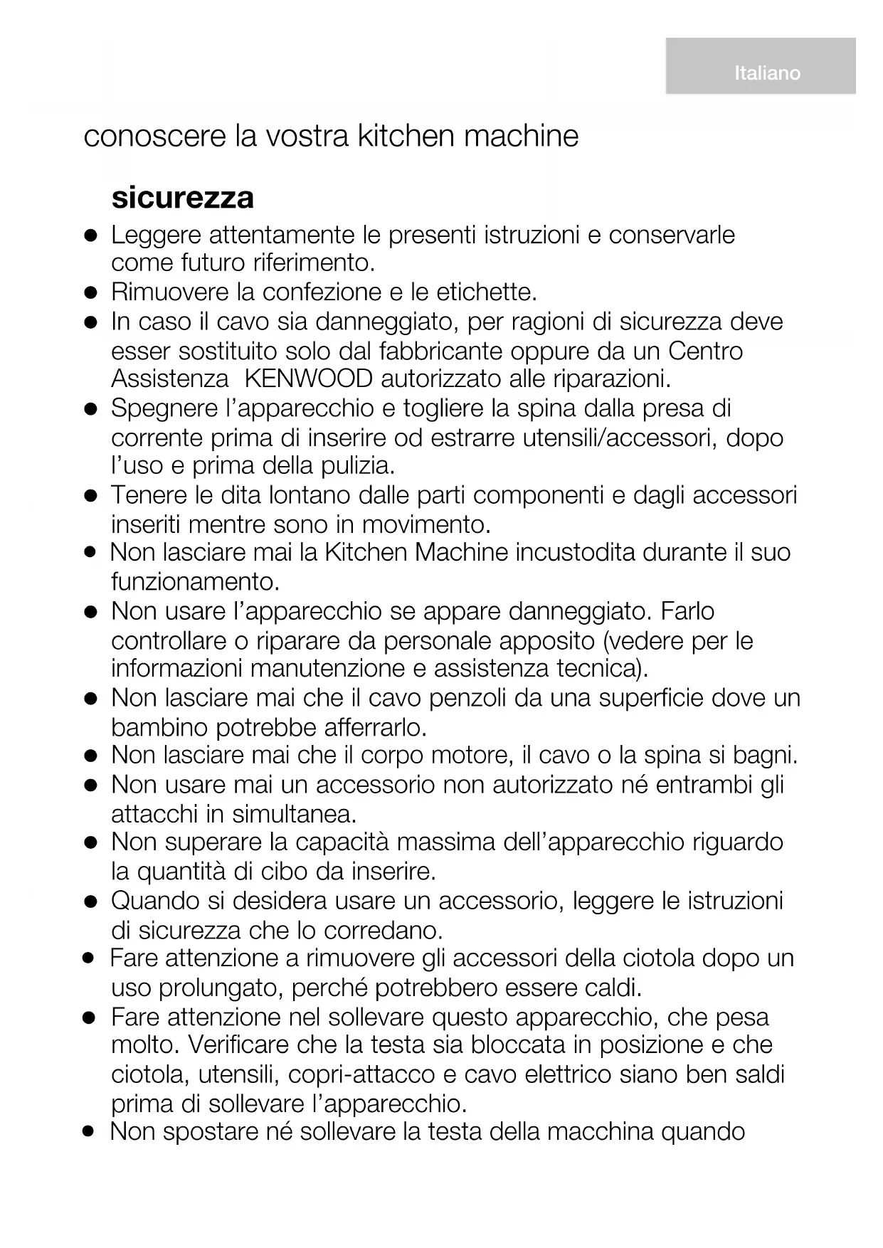Non lasciare mai la Kitchen Machine incustodita durante il suo funzionamento.