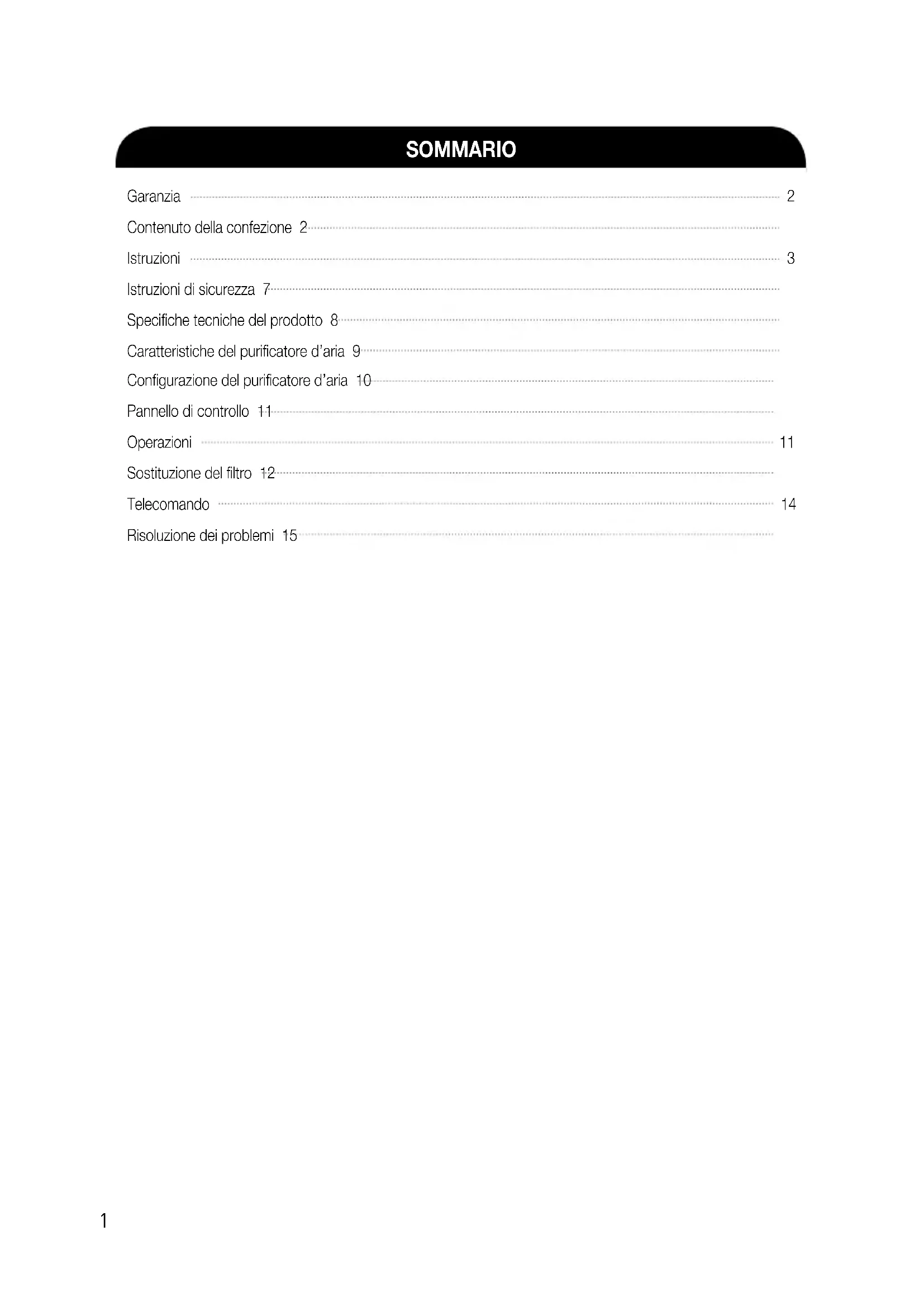 NON permettere ai bambini di giocare sul purificatore d’aria o nelle immediate vicinanze dello stesso. NON spruzzare liquidi infiammabili o gas all’interno dell’unità. NON riempire il purificatore d’aria con acqua calda. NON installare l’unità sotto alla luce solare diretta. NON usare materiali infiammabili (ad esempio benzene o alcol) per pulire il purificatore d’aria. NON mettere indumenti e asciugamani sopra al purificatore mentre è in funzione. NON spruzzare liquidi direttamente all’interno del purificatore d’aria in fase di pulizia.ISTRUZIONI DI SICUREZZA Grazie per aver scelto di acquistare un purificatore d’aria Winix. Si prega di leggere questo manuale con attenzione prima dell’uso. Questo prodotto è unicamente per uso domestico.