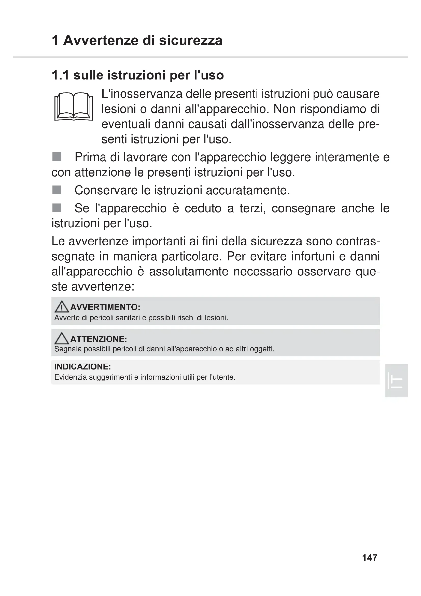 1.1 sulle istruzioni per l'uso