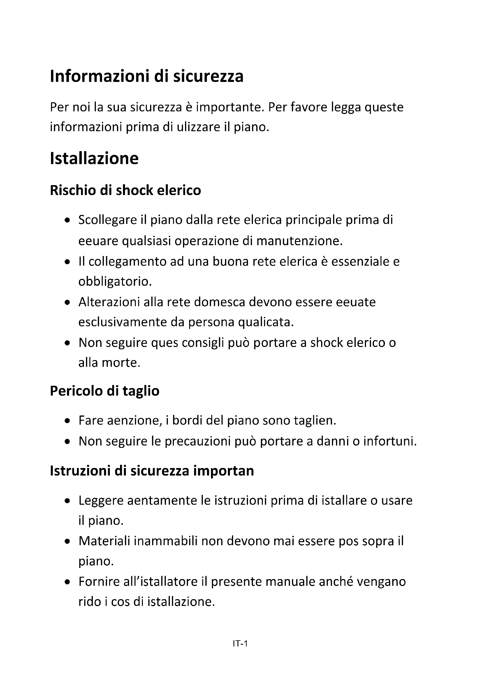 corrente al piano. Il piano suona nel caso ci siano liquidi sulla superficie e i comandi touch potrebbero non funzionare. Assicurarsi di aver asciugato i comandi prima di riaccendere il piano.